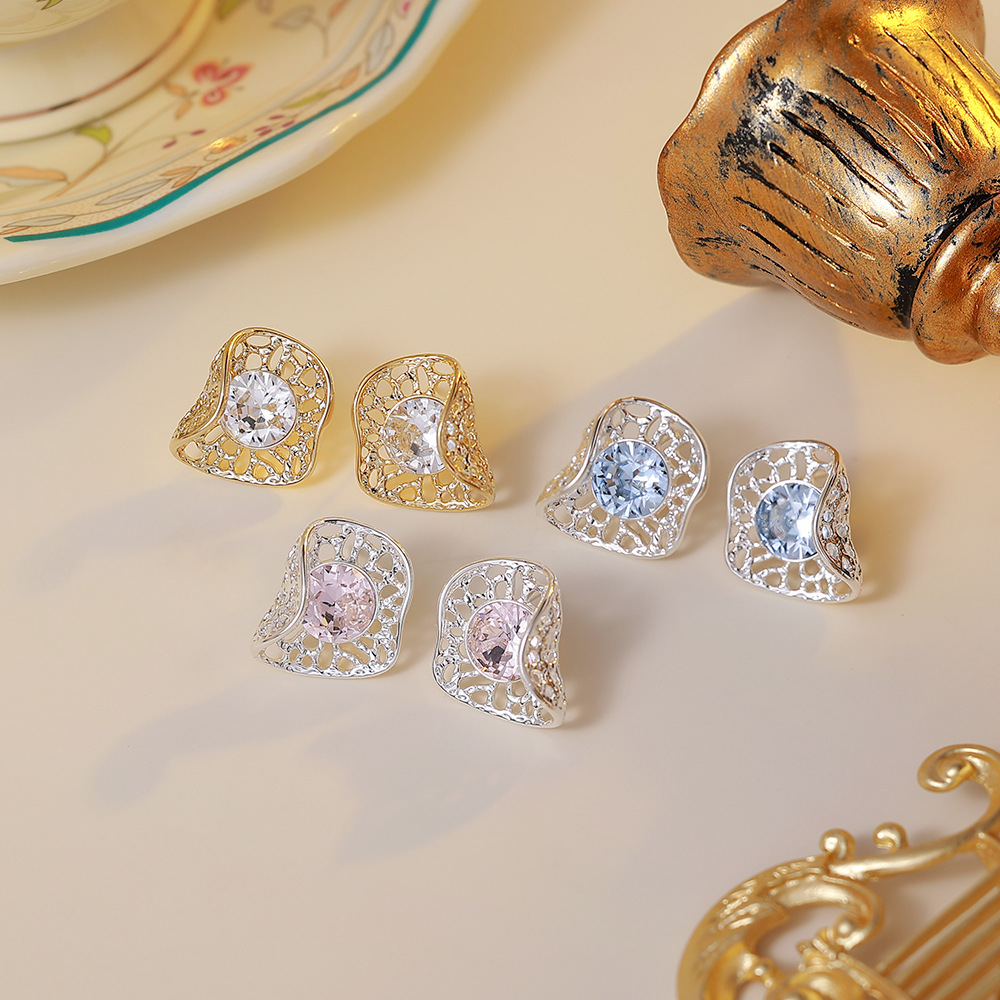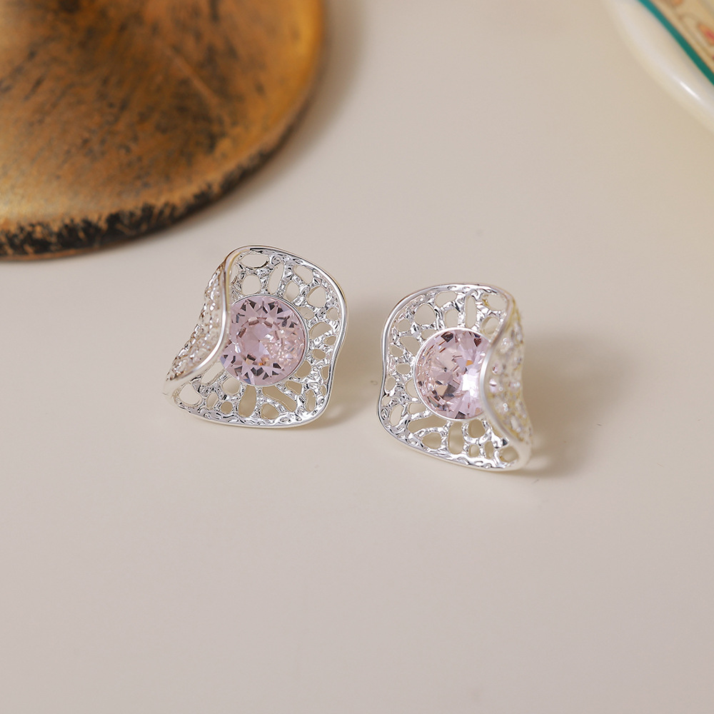 silver hollow pink zircon ear studs