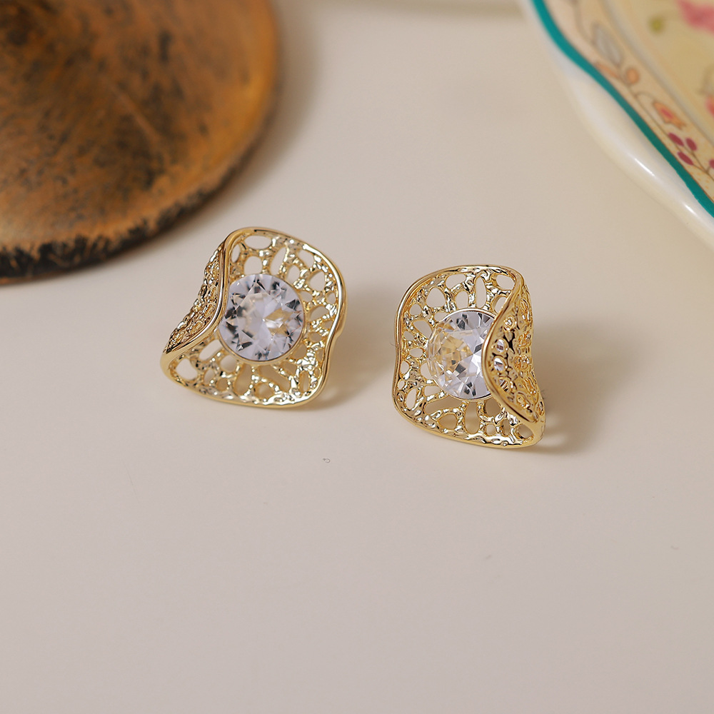 golden hollow flower stud earrings