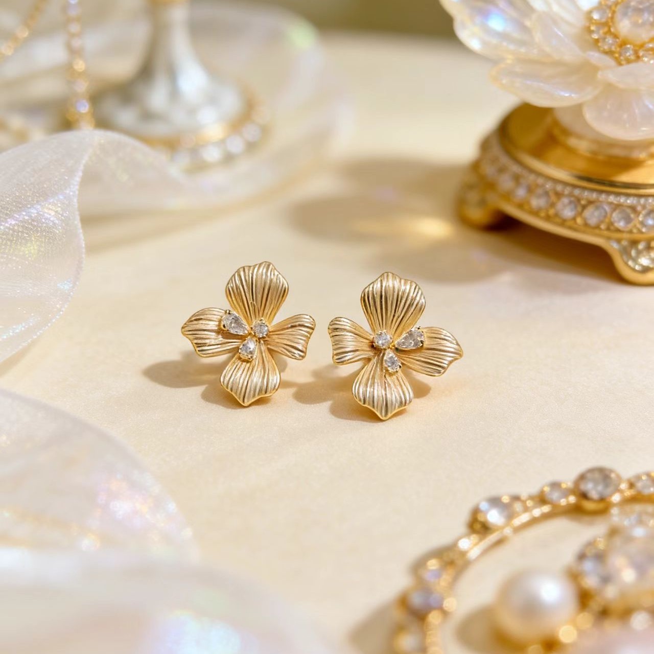 pink flower stud earrings