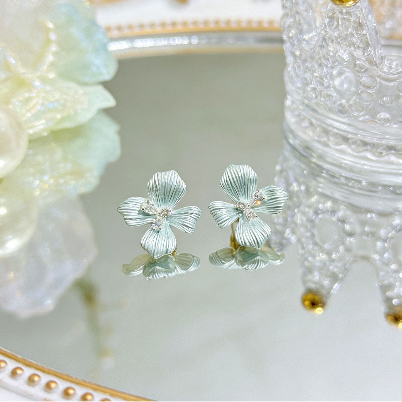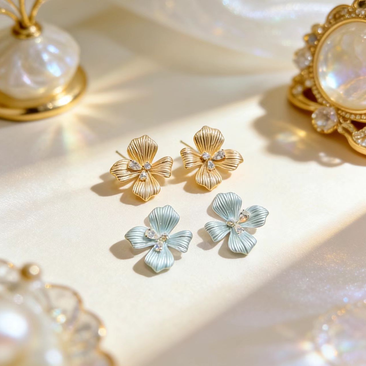 blue flower stud earrings