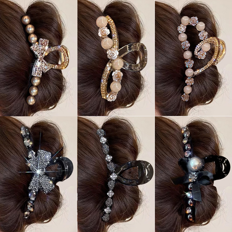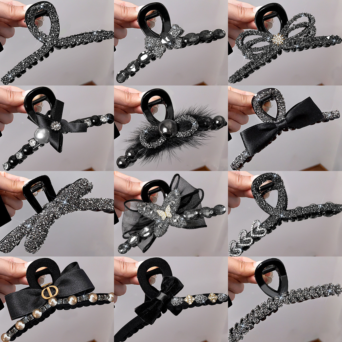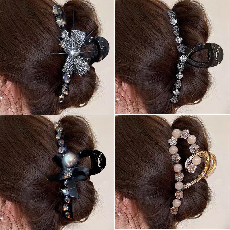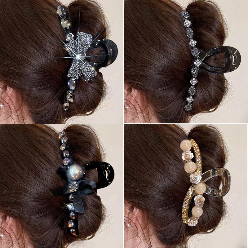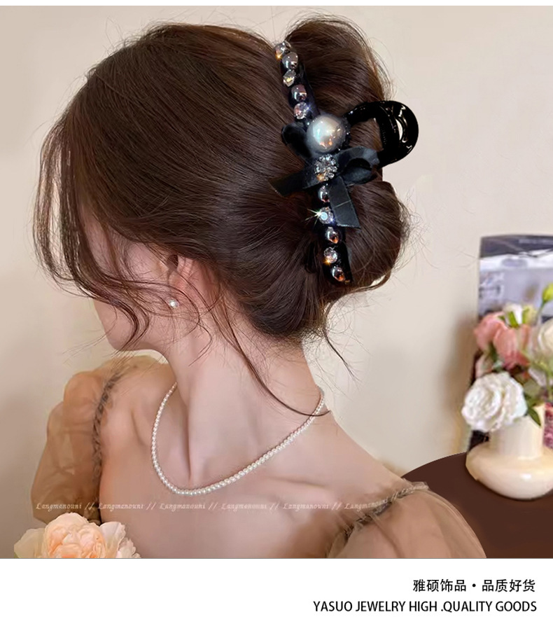 black full diamond bow claw clip -11cm