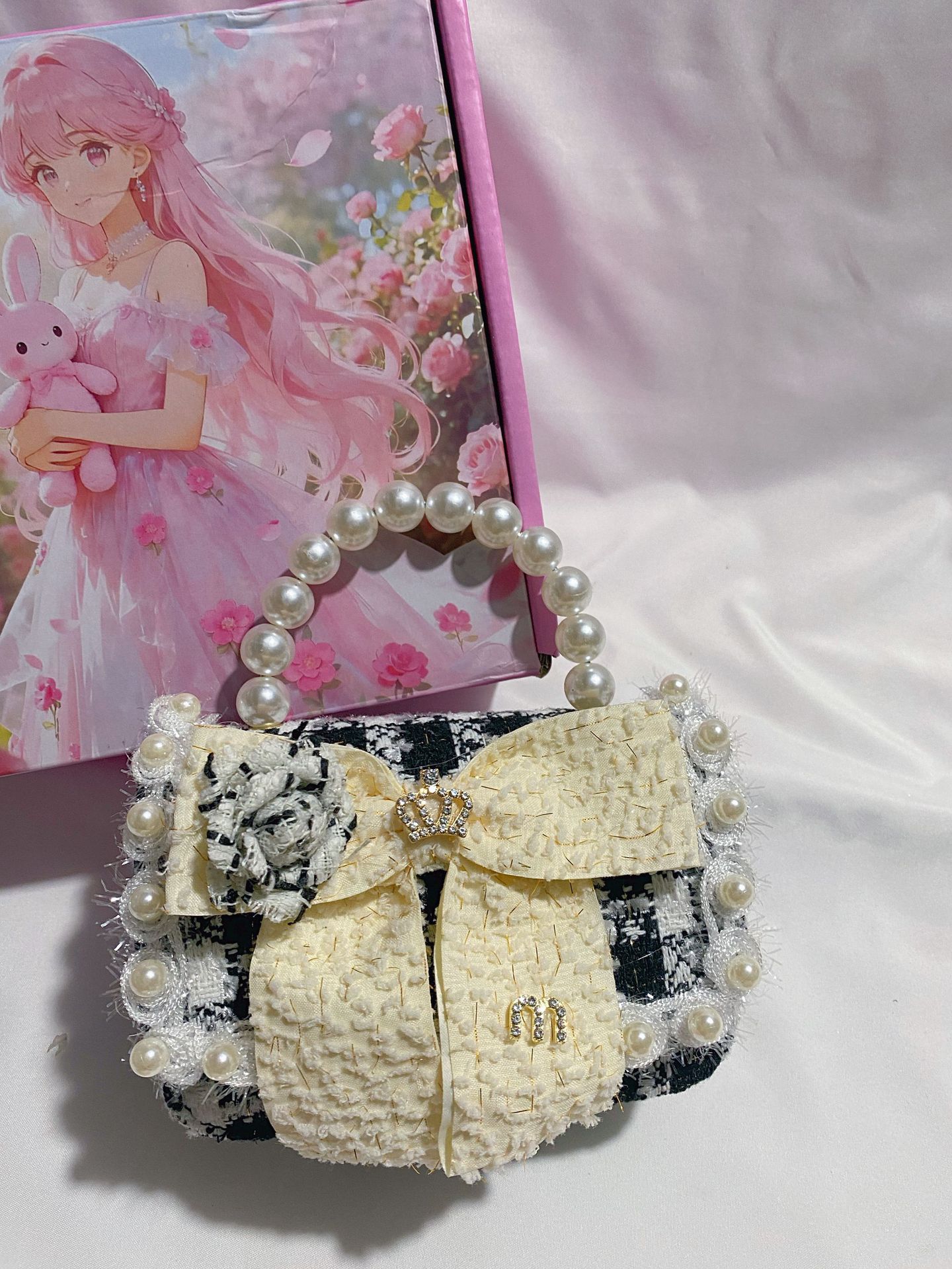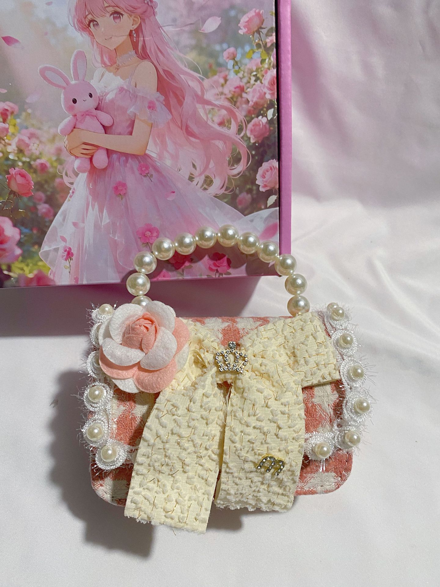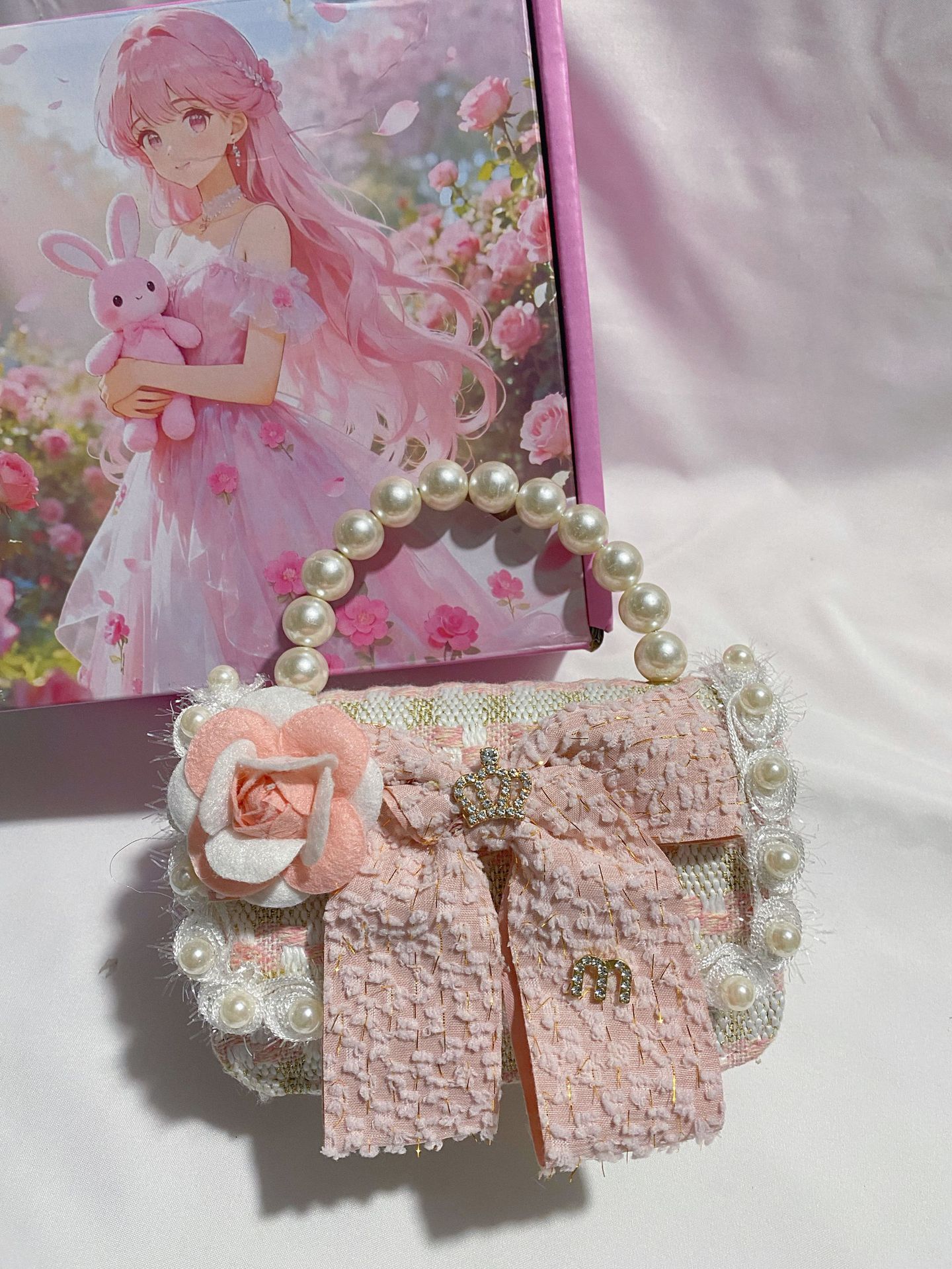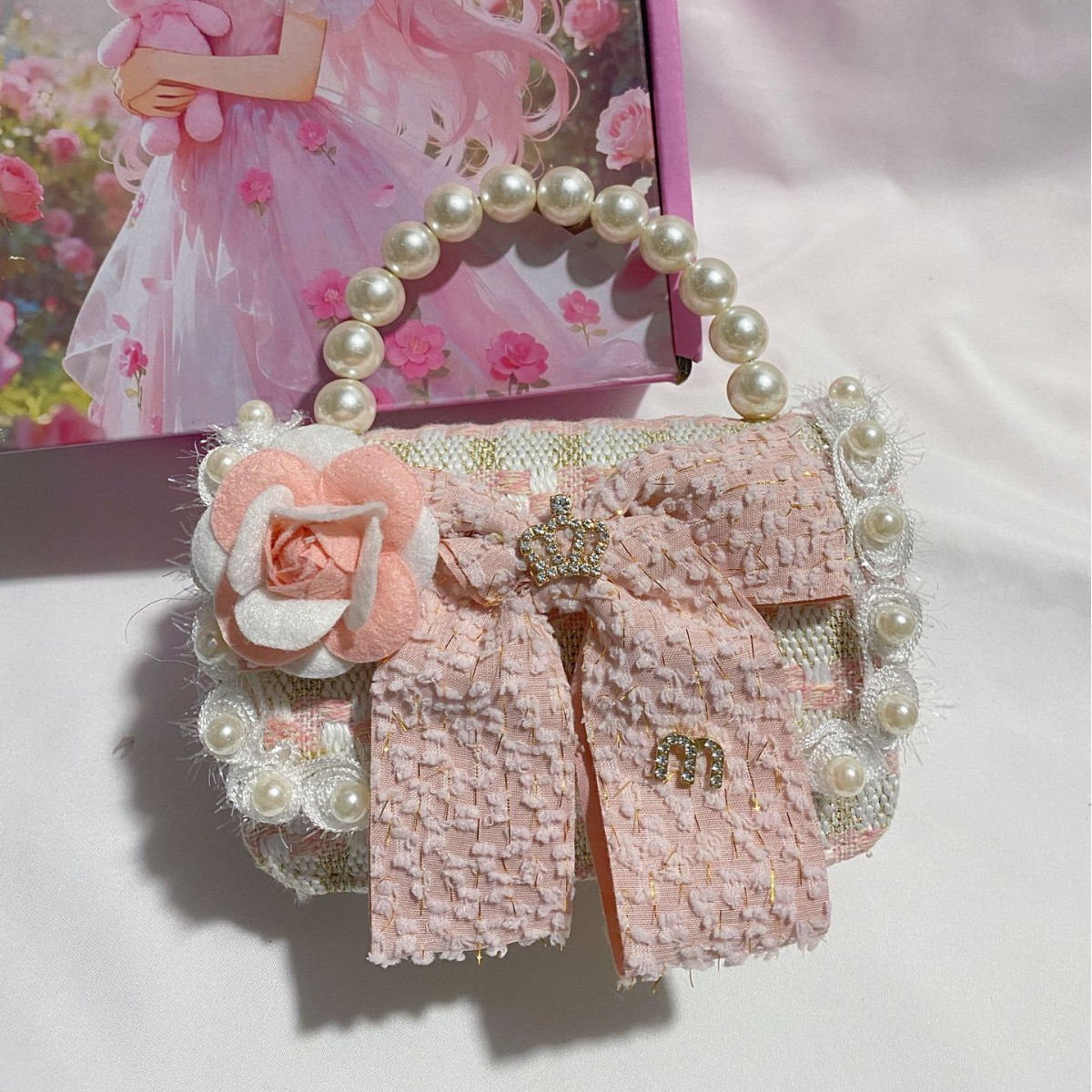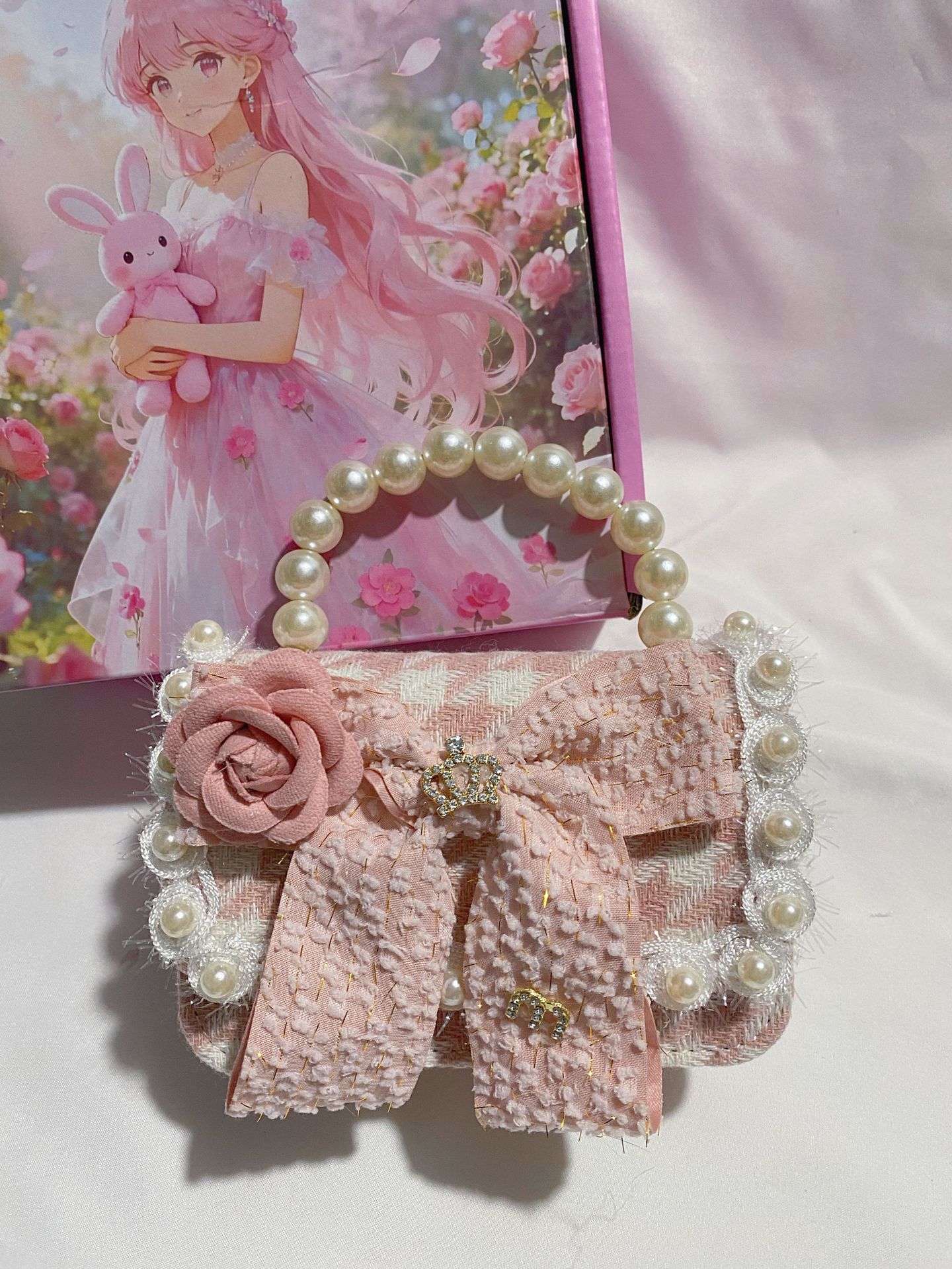 crown white bow deep pink