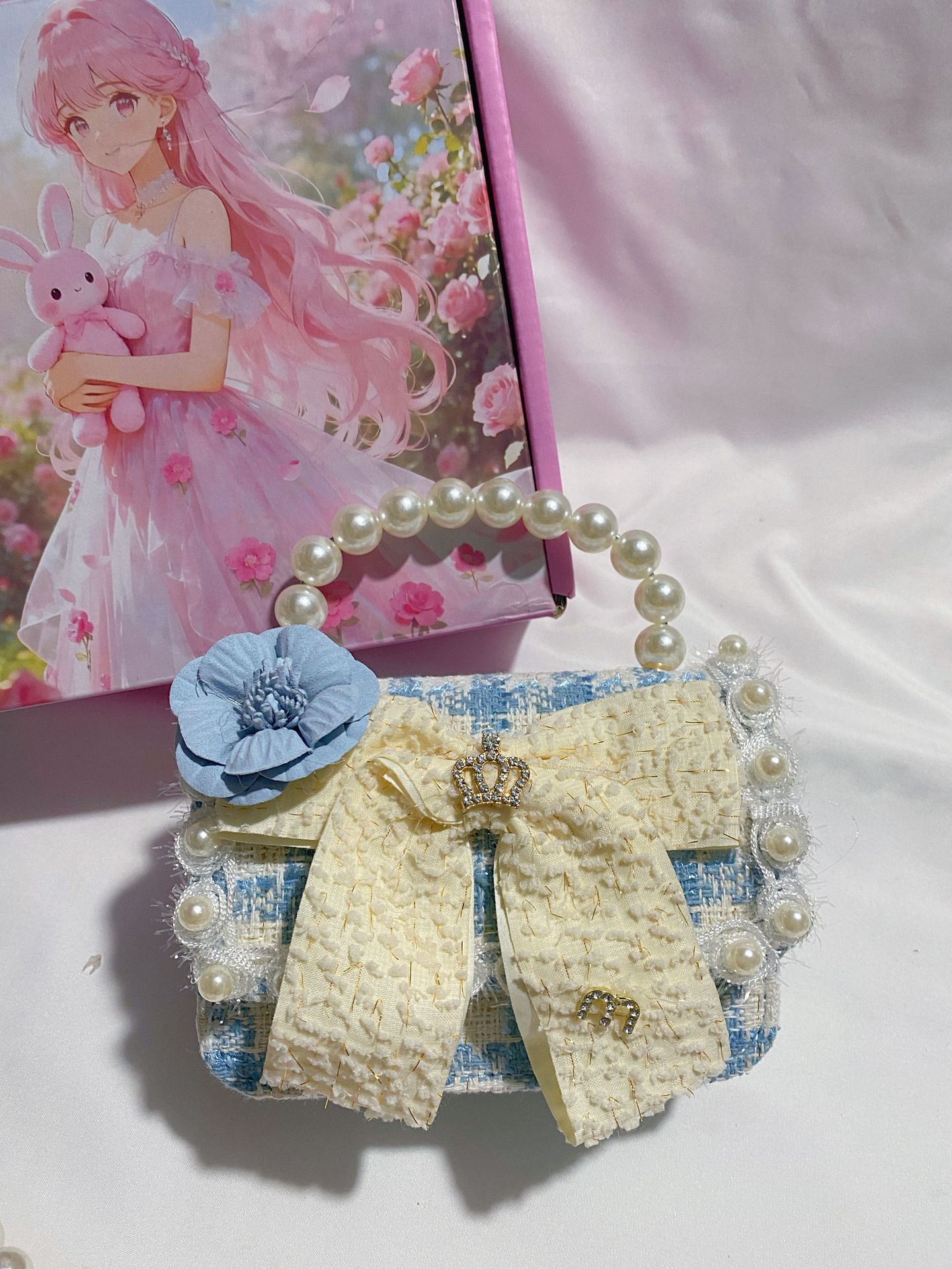 crown white bow blue