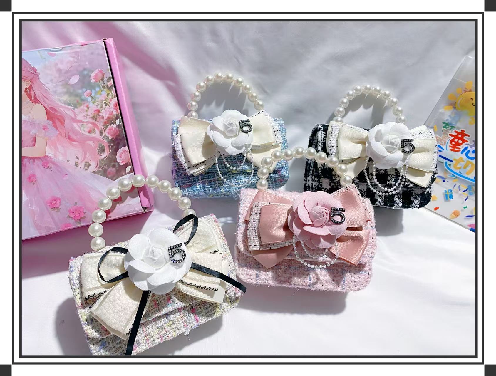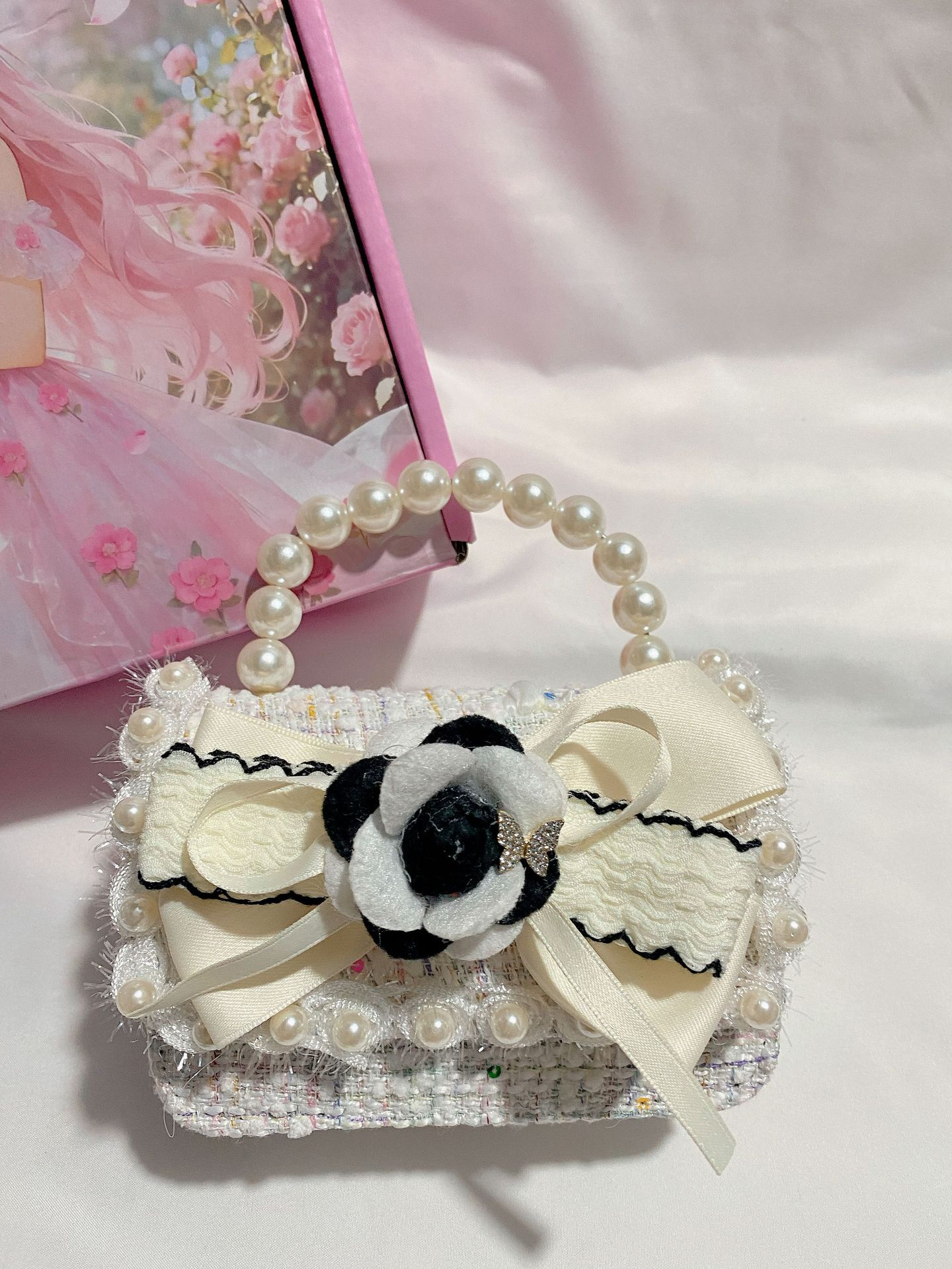 pink white flower pink bow purple