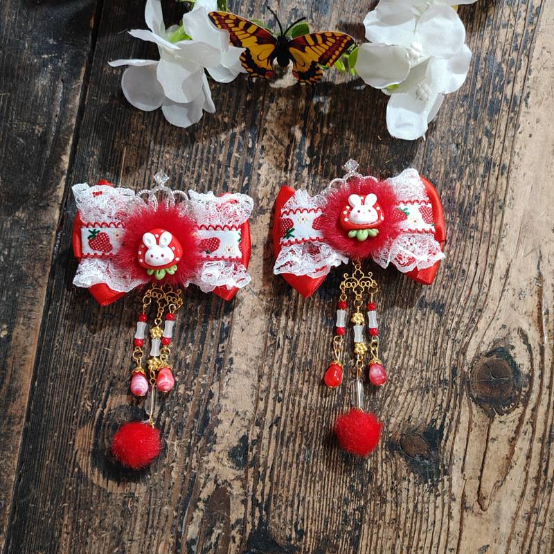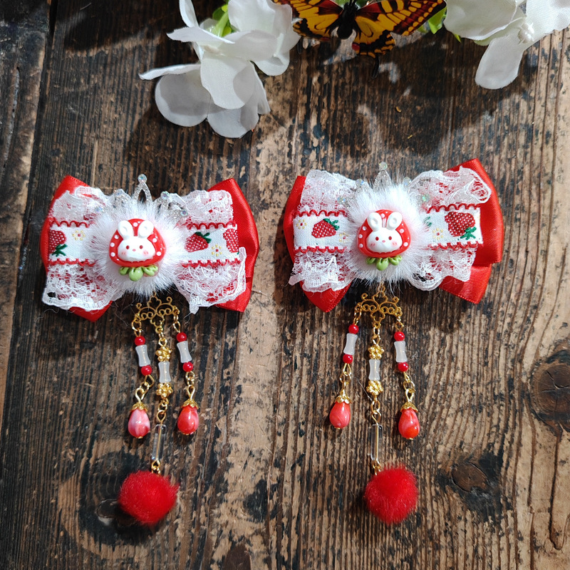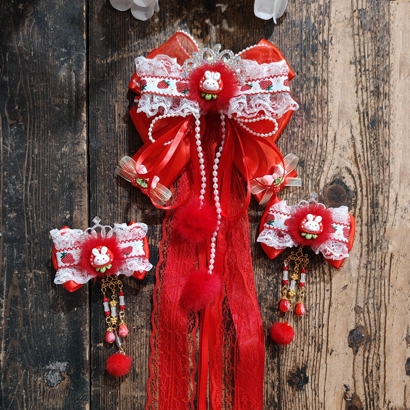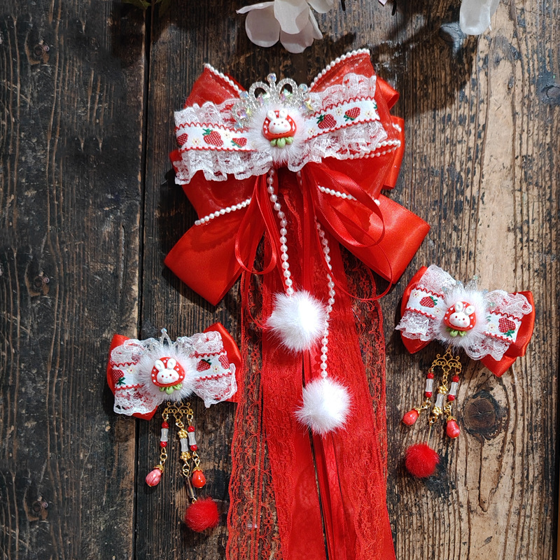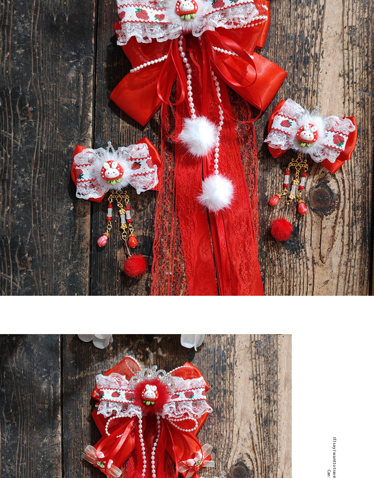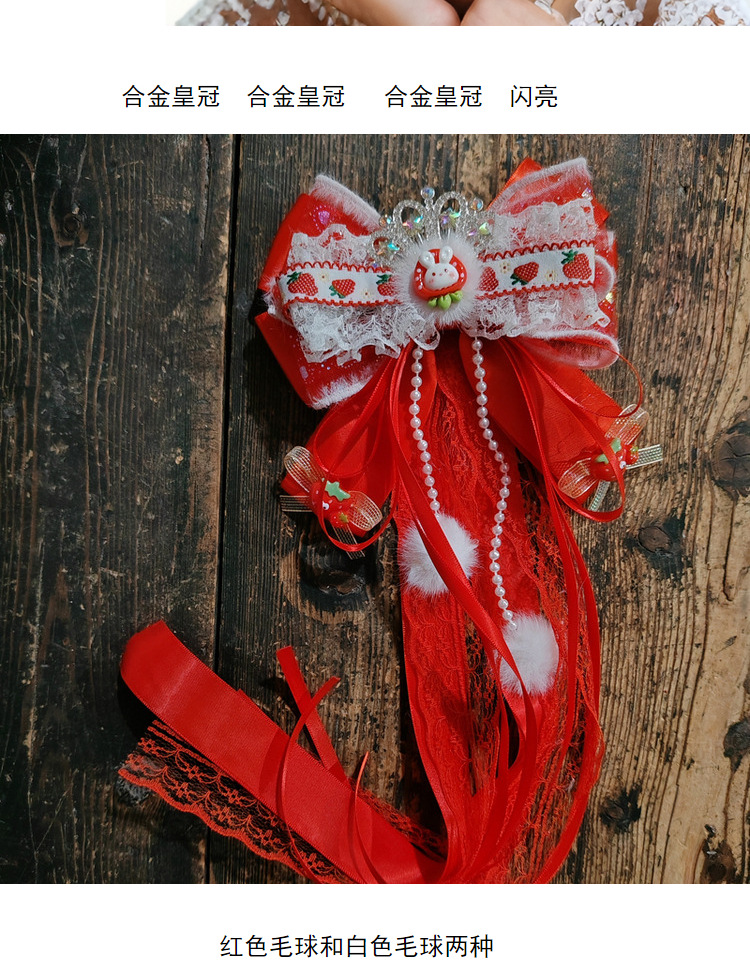 red white fur alloy crown a pair of hairclips