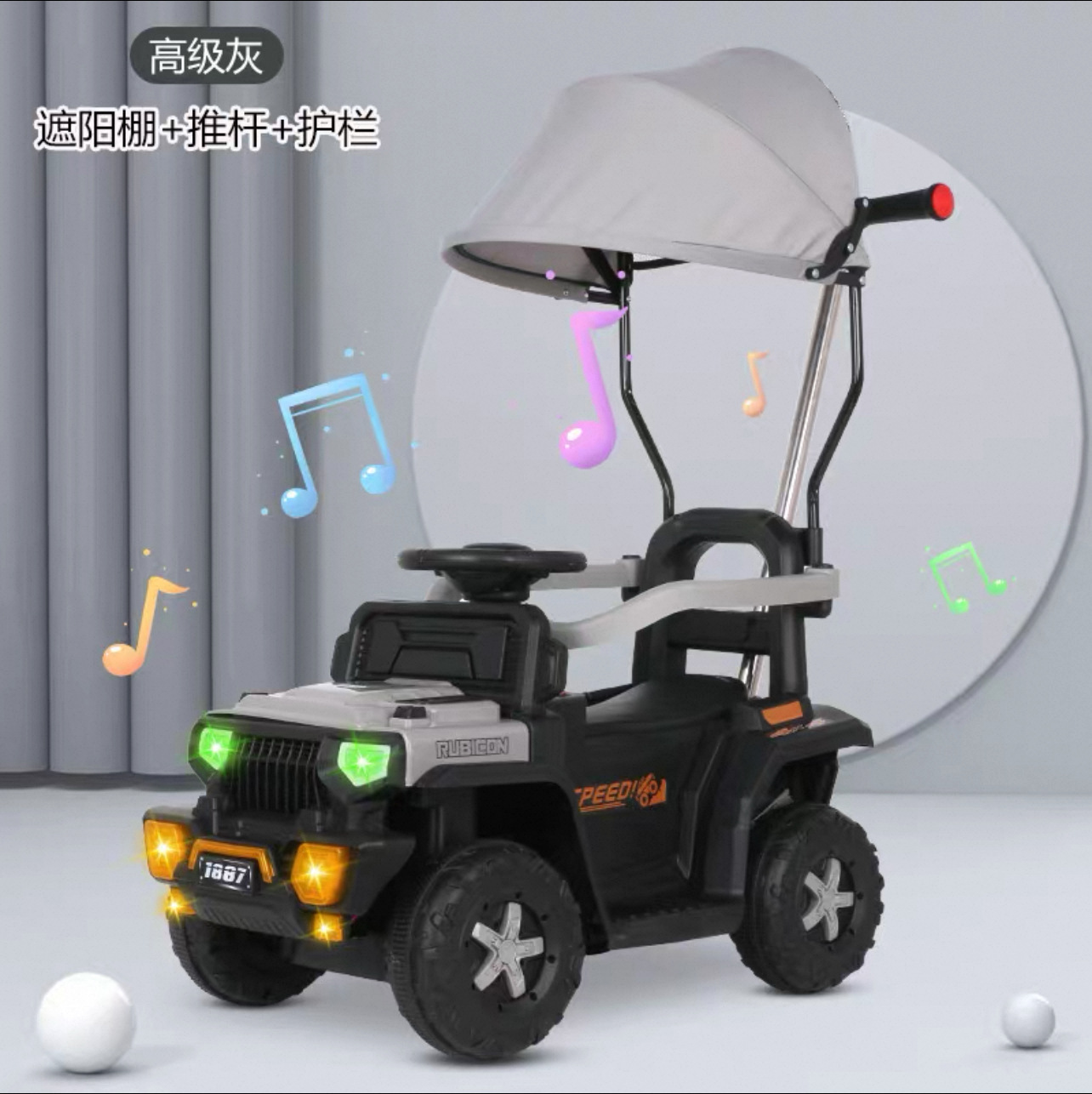 滑行车加推把遮阳棚独立包装尺寸74*38*35cm毛重6.3开关左