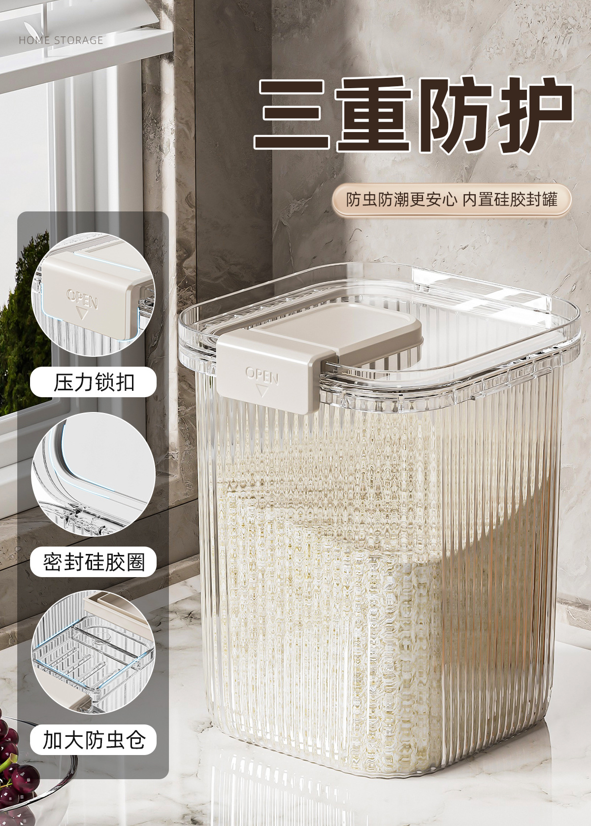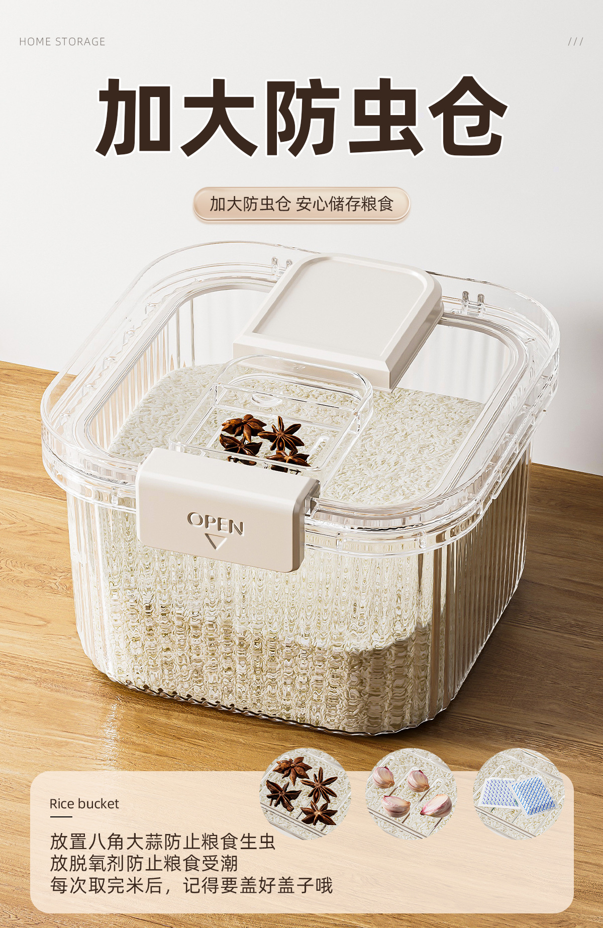 [upgrade] 5.00kg timing seal rice bucket-white