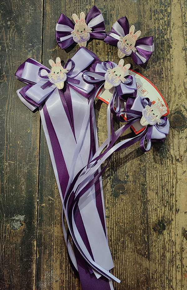 purple back clip long streamer pieces