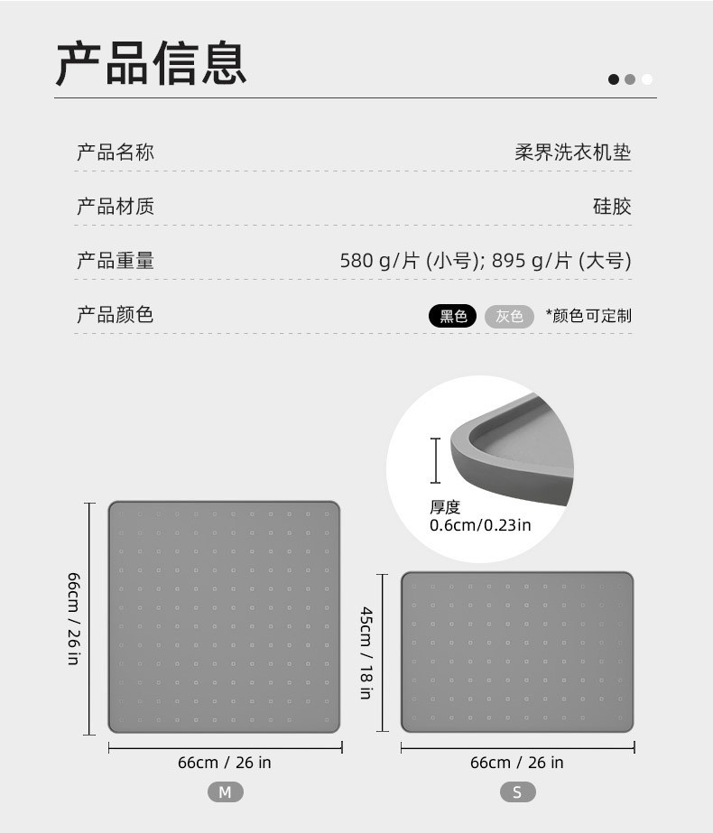 soft world washing machine silica gel pad 26*26in-gray-1 pack