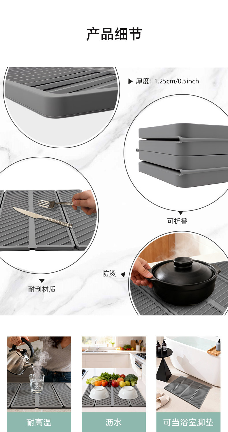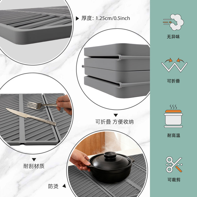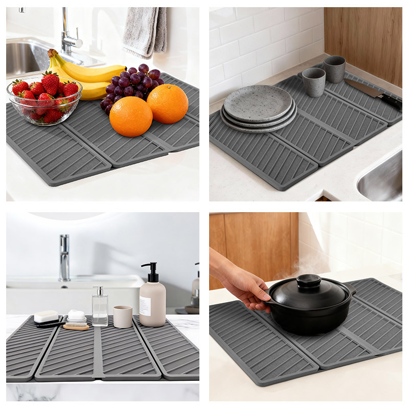 square plaid fold water draining pad-dark gray