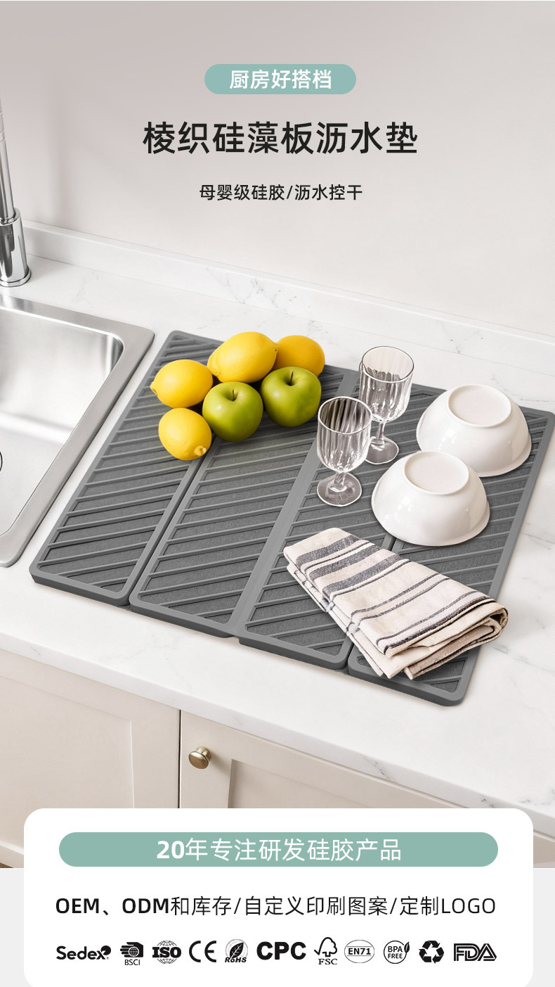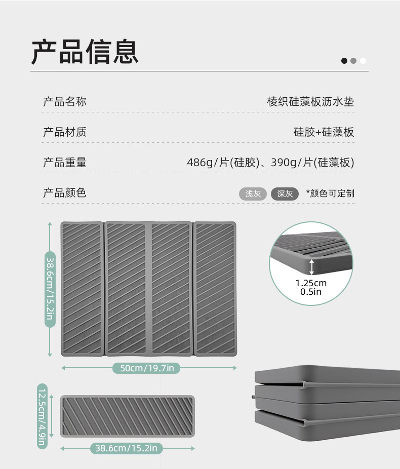 woven diatom plate water draining pad-light gray