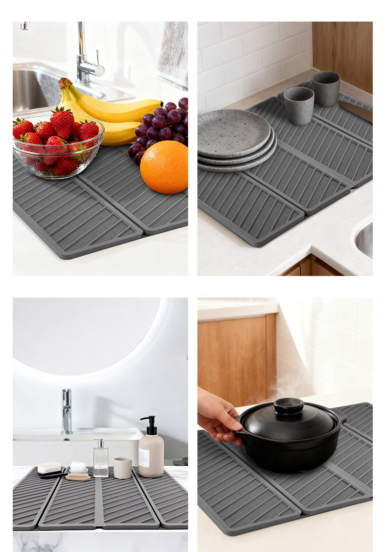 grid four-fold water draining pad-dark gray