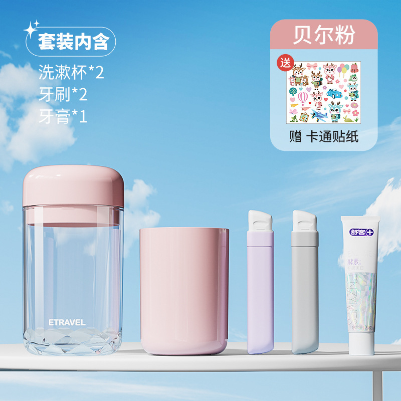 bell pink double cup cup five-piece set [including toothbrush * 2 + toothpaste + gargle cup * 2]]