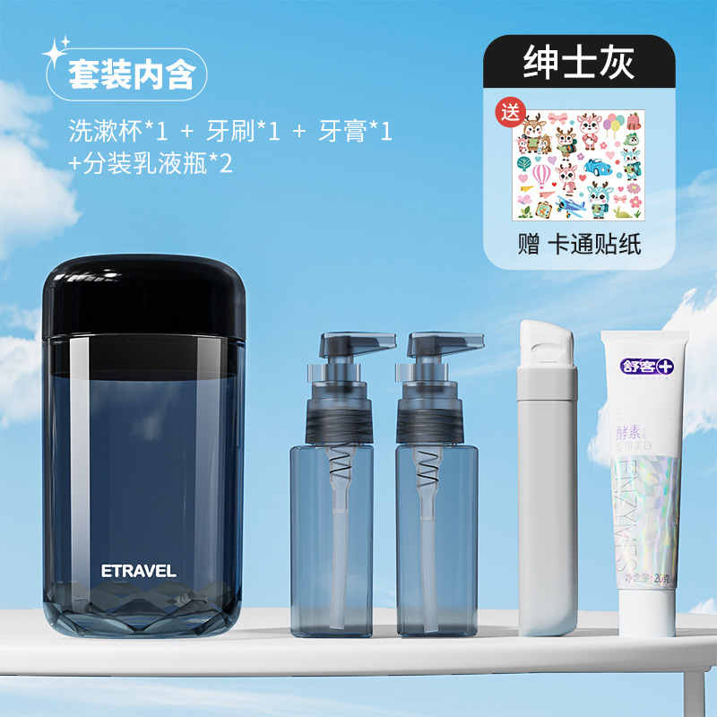 gentleman gray single cup cup five-piece set [including toothbrush + toothpaste + gargle cup + storage bottle * 2]]