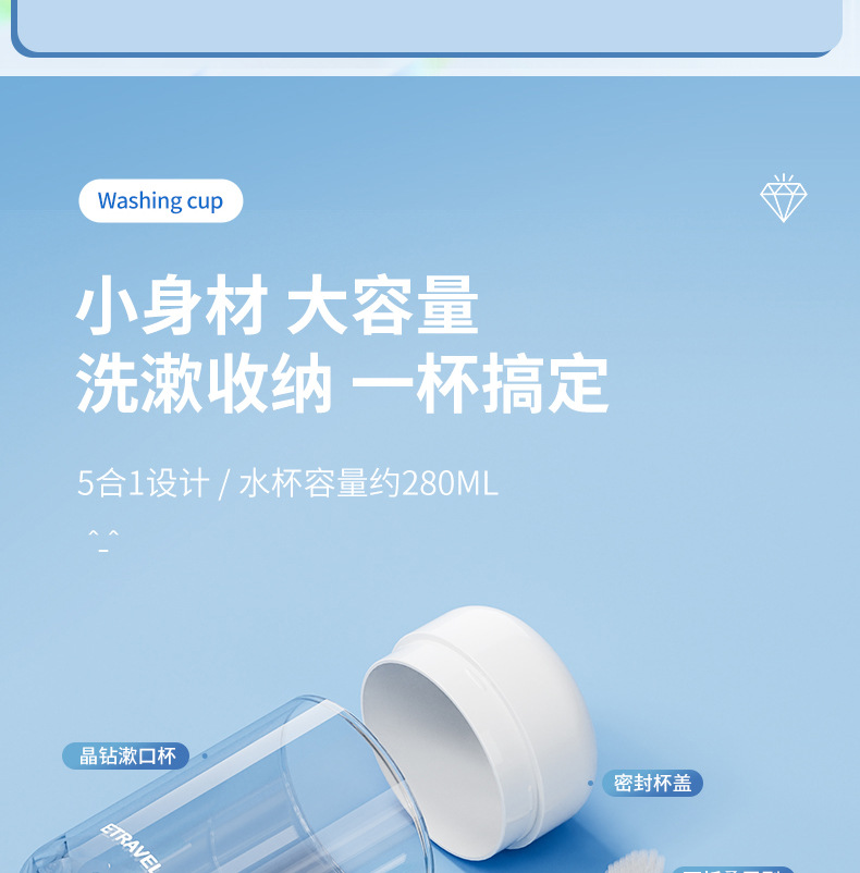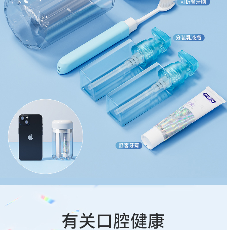 mist blue single cup five-piece set [including toothbrush + toothpaste + gargle cup + storage bottle * 2]]