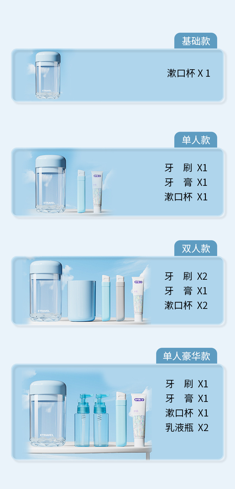 mist blue single cup three-piece set [including toothbrush + toothpaste + gargle cup]]