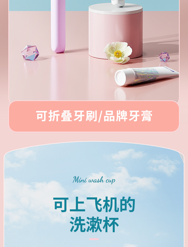 pink-single cup **seven-piece [lotion bottle * 2 + toothbrush * 2 + toothpaste * 1 + folding comb * 1 + gargle cup * 1]]
