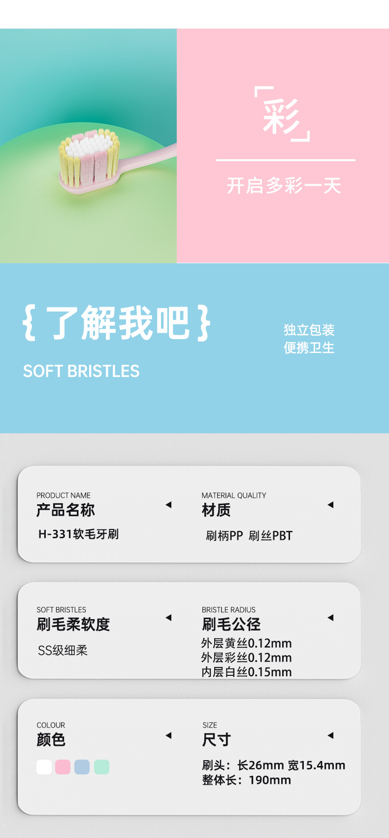 wide head soft-bristle toothbrush [pink] 1 pack