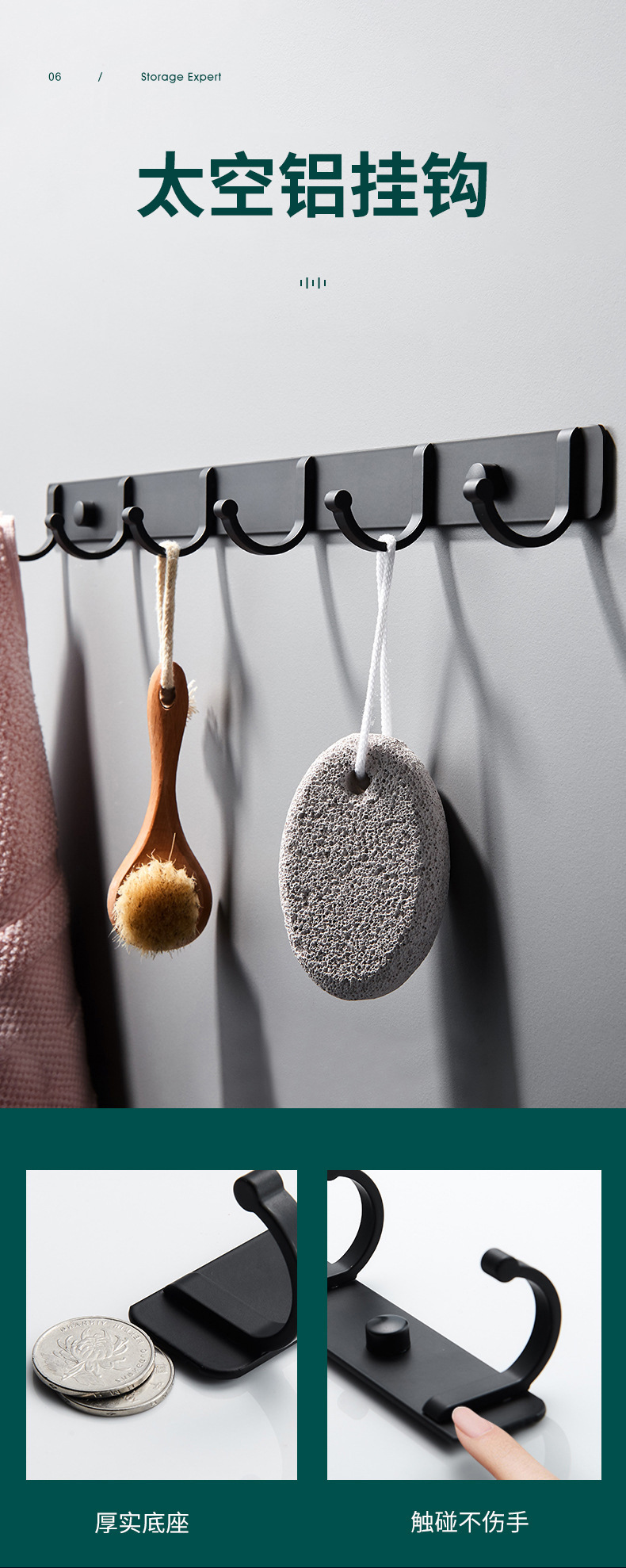 stainless steel washbasins hook-black 0.7*6.5 * 3.5cm