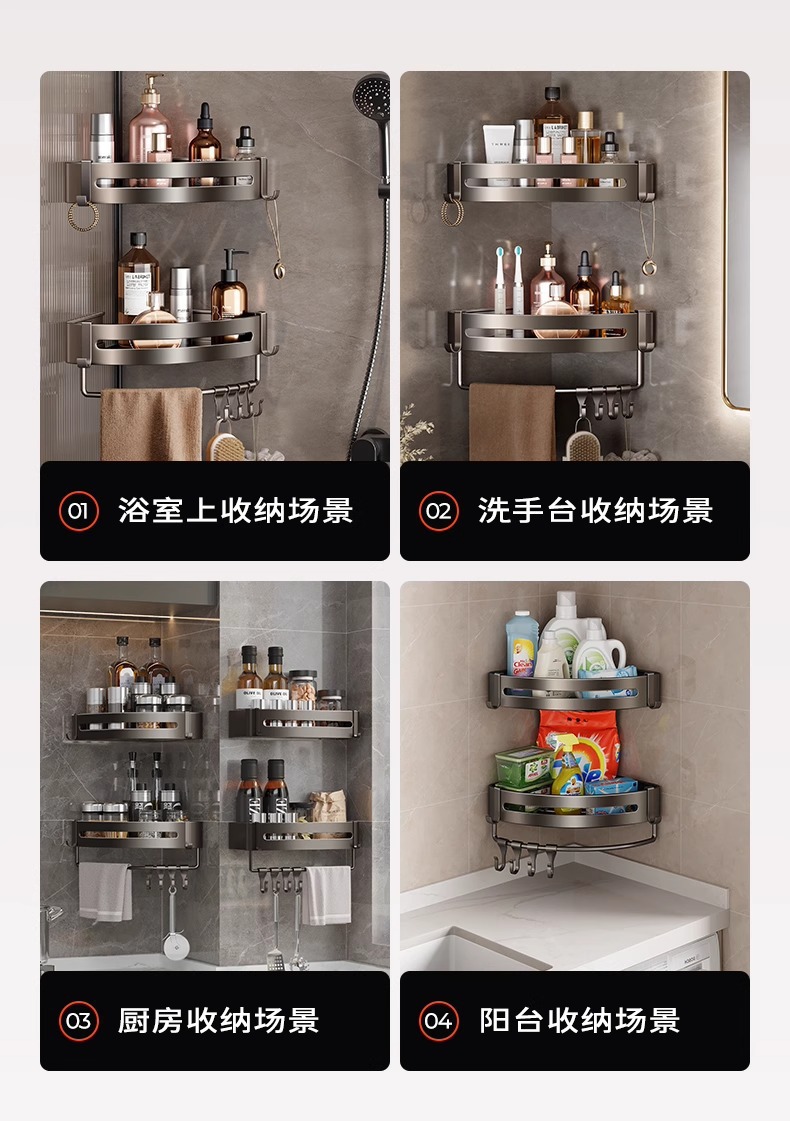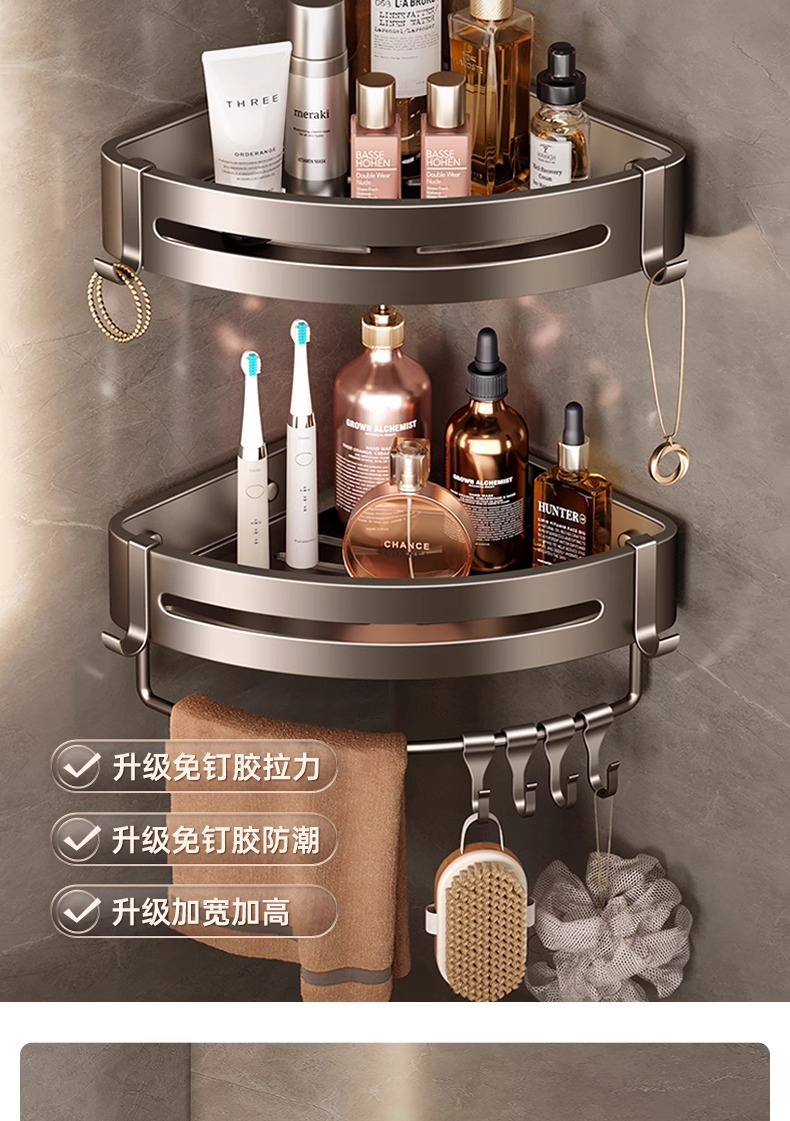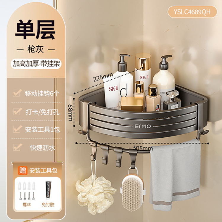 triangle storage rack thickened heightening + hanging rod +6 hooks