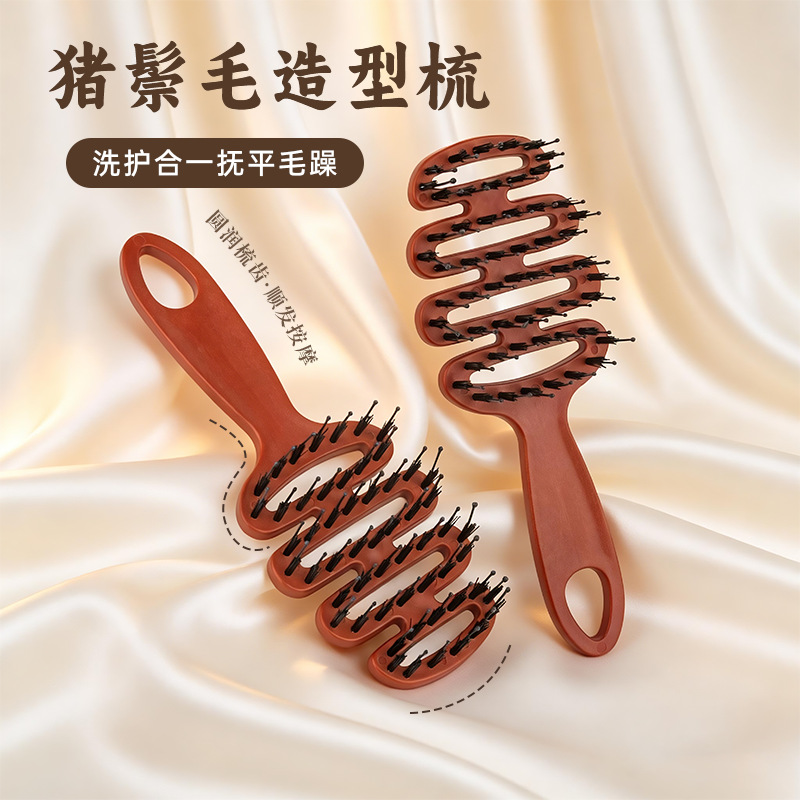 new high-end home styling comb hairdressing comb broken hair finishing solution anti-static bunge pine cone comb bunge pine cone pig bristle hair care comb