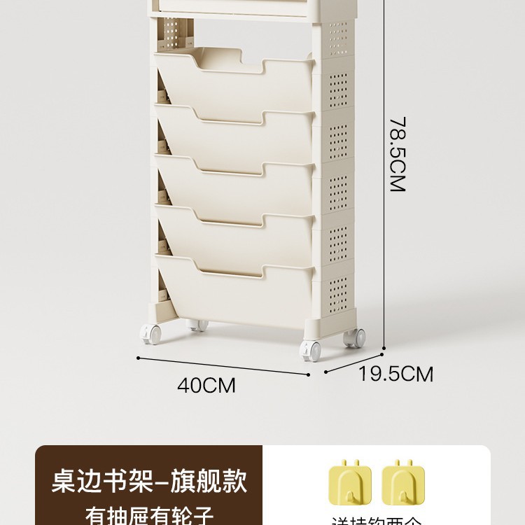 desk-side bookshelf-5 tiers-basic style-with drawers, no wheels