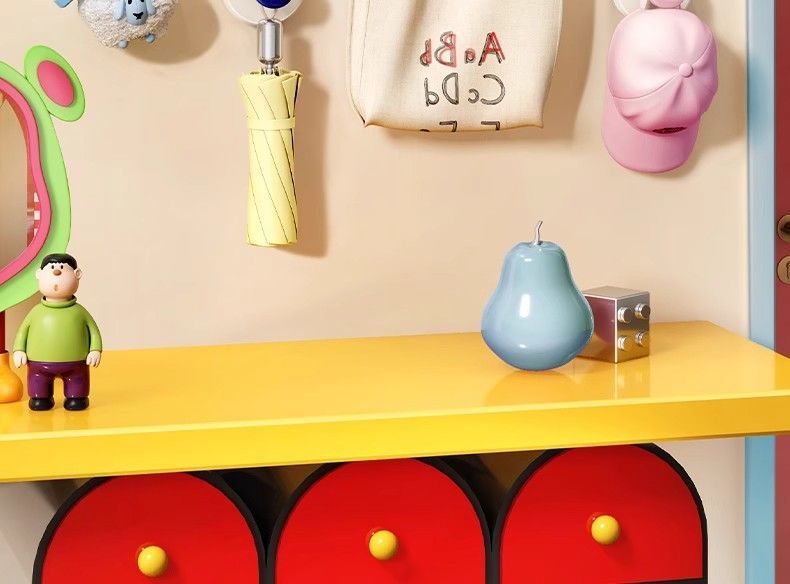 color: pink, red, yellow, blue, patch style