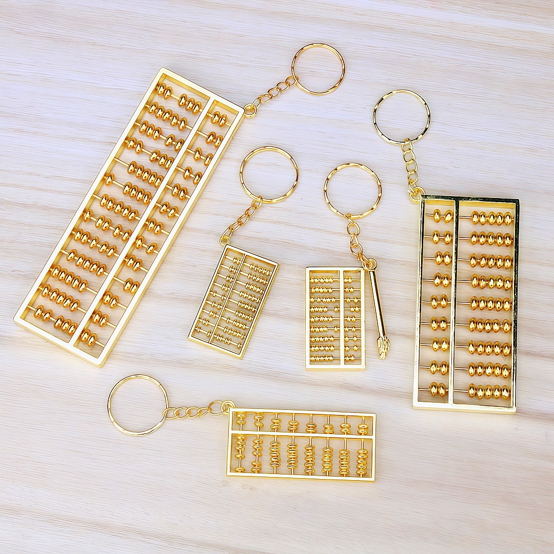 nine-column abacus with pen, 4.2 x 2.3 cm, gold color