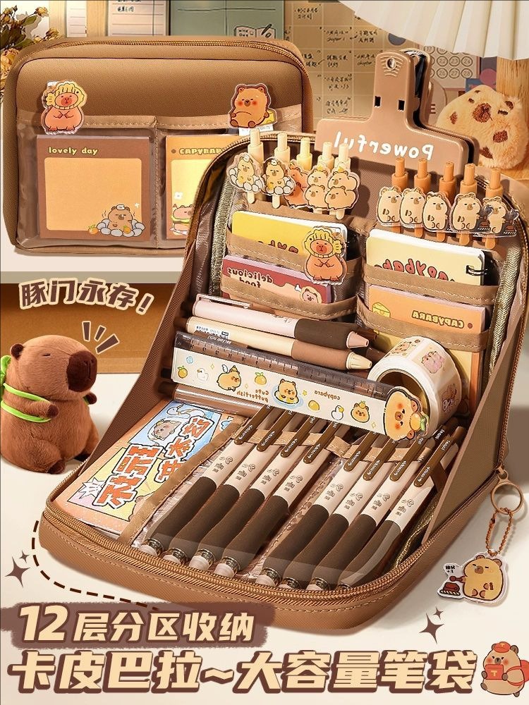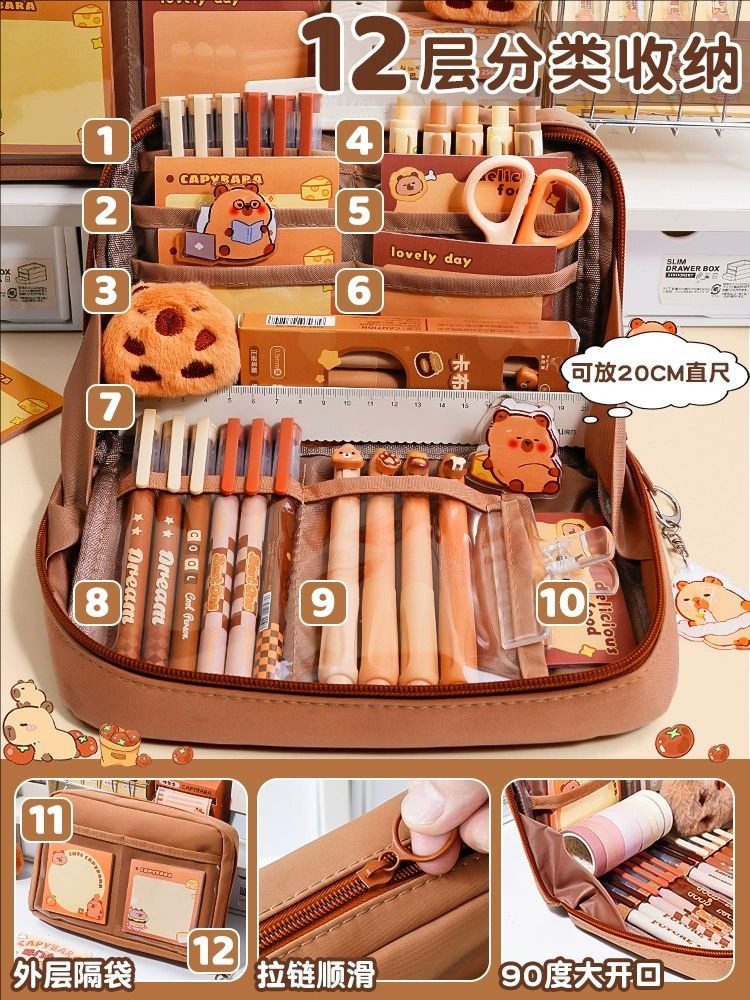 12-layer thickened capybara-shaped pencil case-13-piece set for senior grades