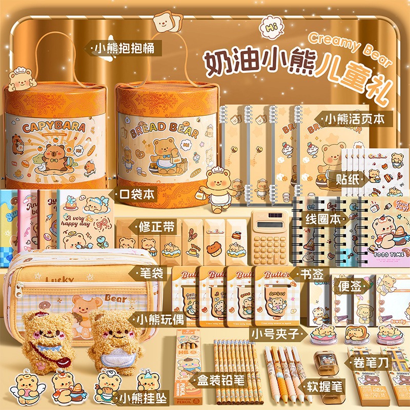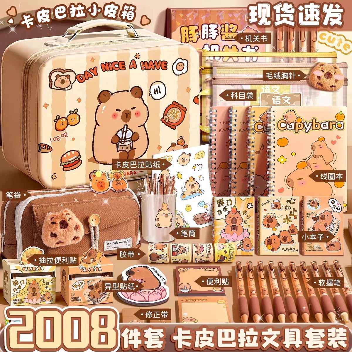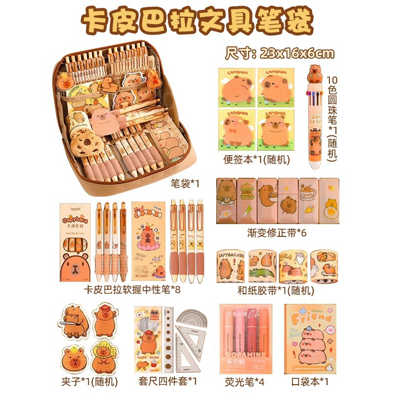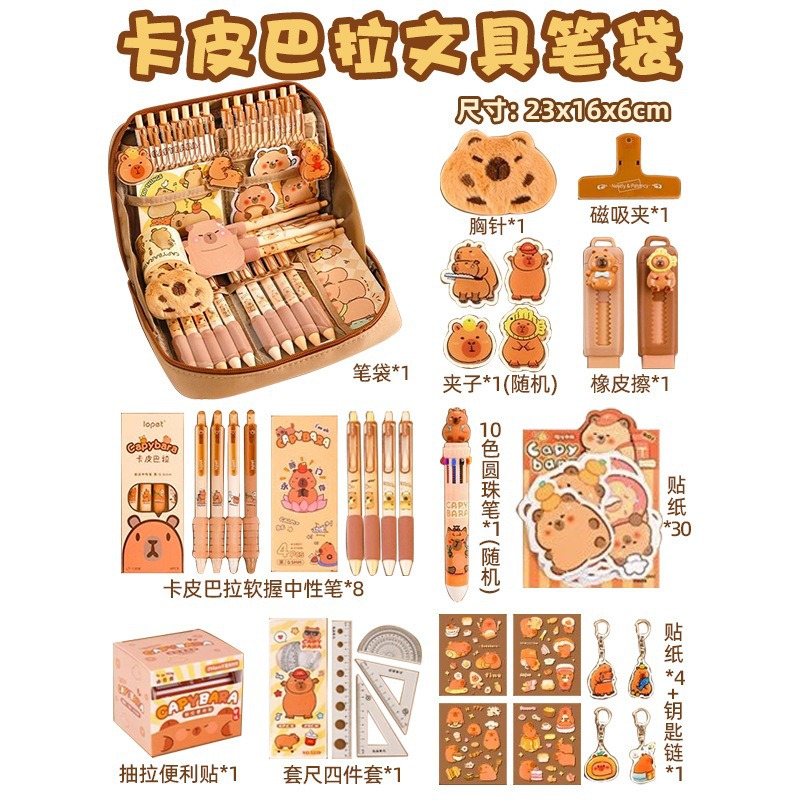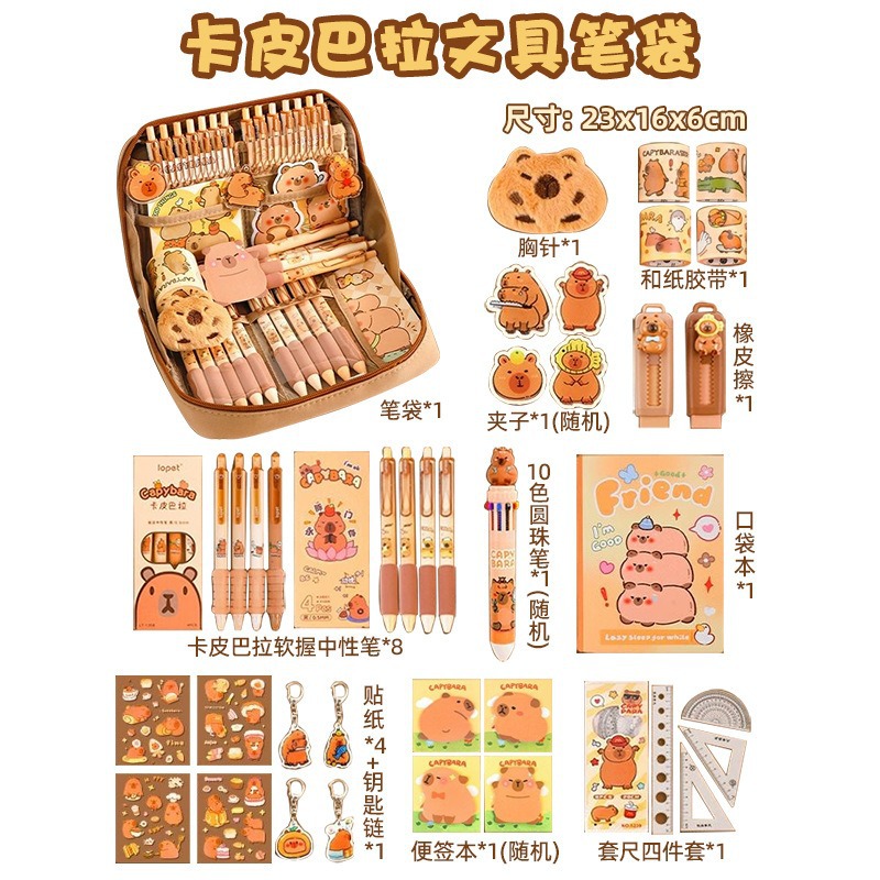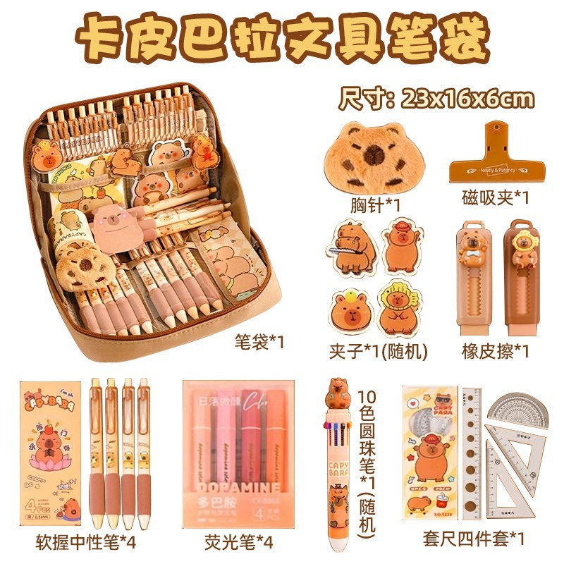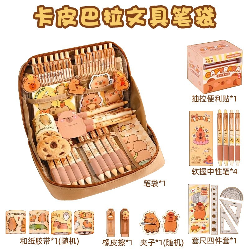 2-tier thickened capybara-shaped pencil case-13-piece set combo