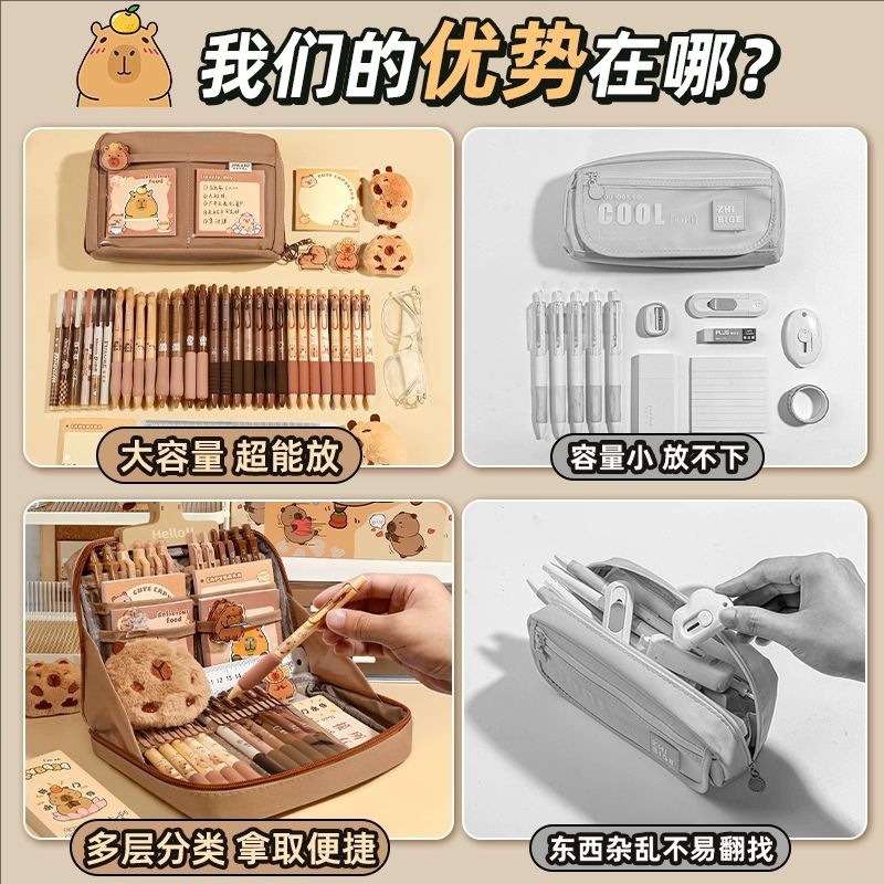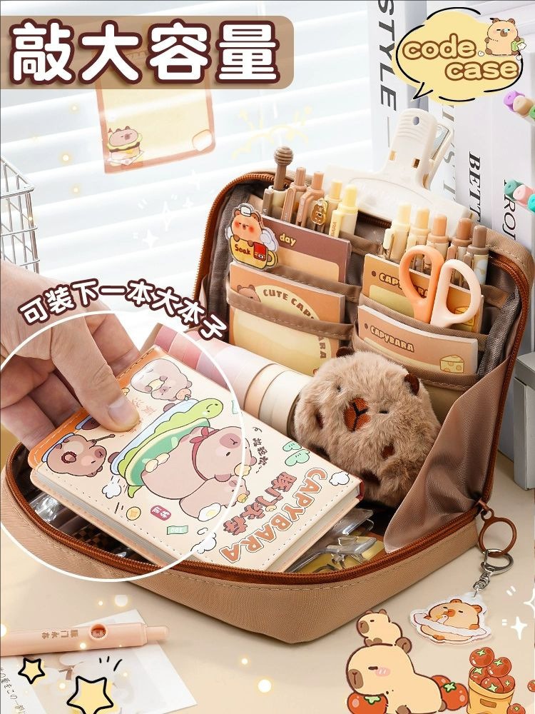 Capipara large capacity 12-layer pencil case with high-quality appearance, cute student stationery bag, learning supplies, and prizes