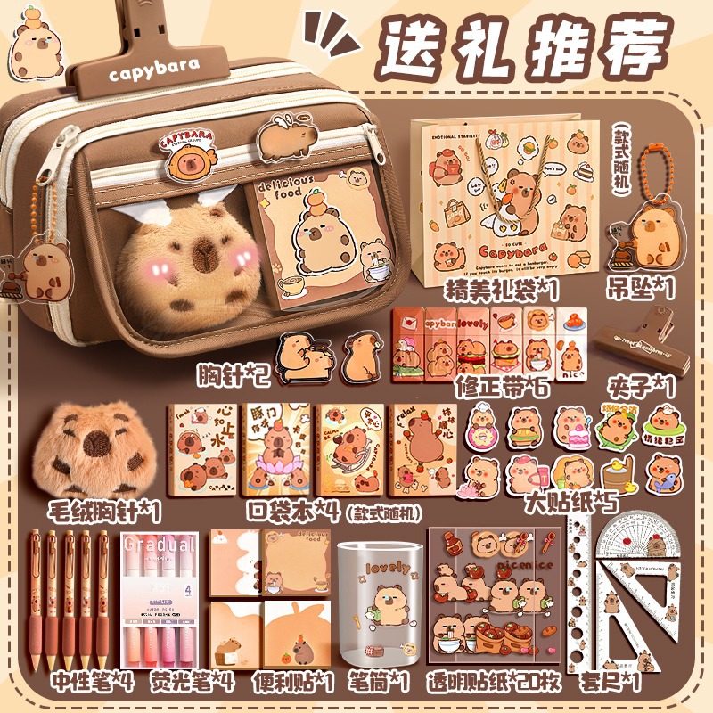 12-layer thickened capybara-shaped pencil case-8-piece set combo