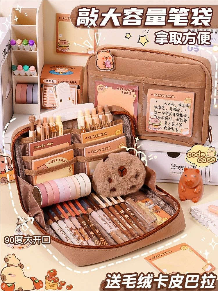 2-layer thickened capybara pencil case-13-piece advanced set