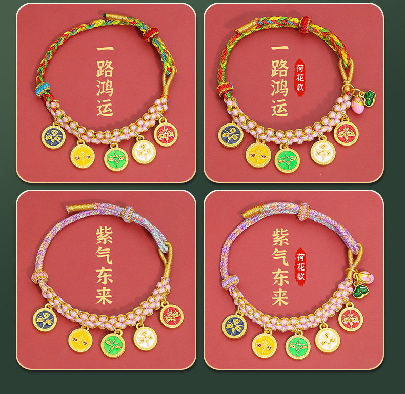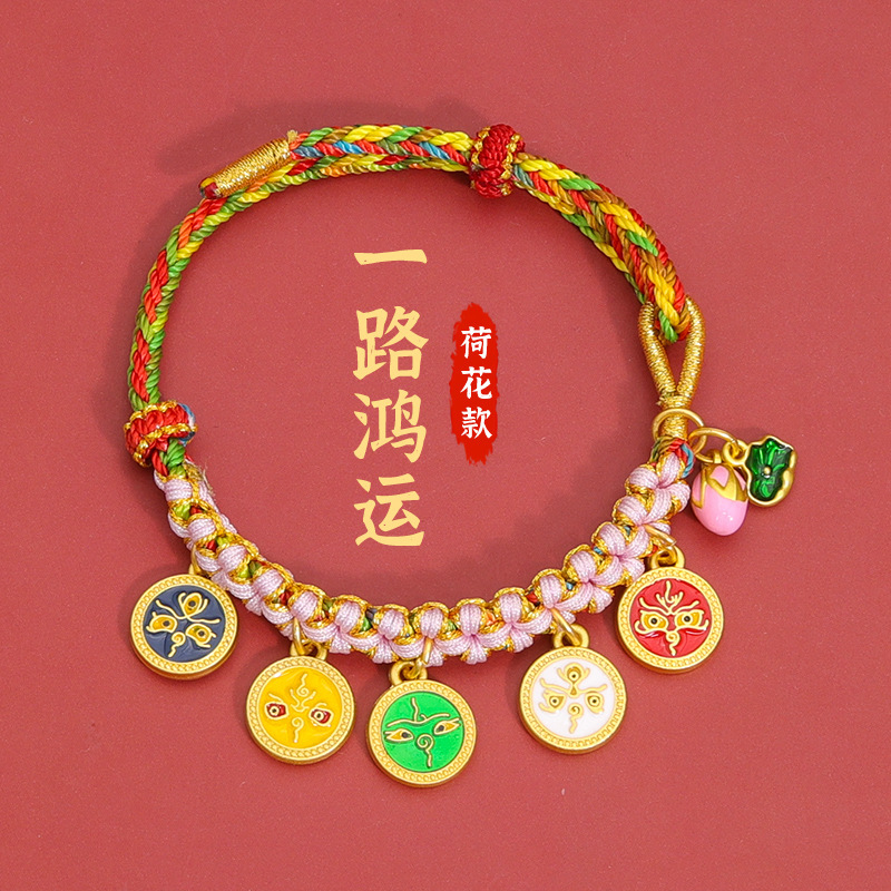 15-peach blossom knot bracelets five gods of wealth + lotus style-everlasting fortune