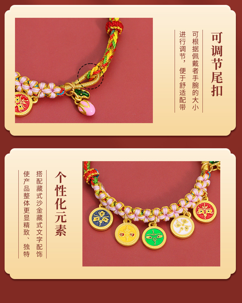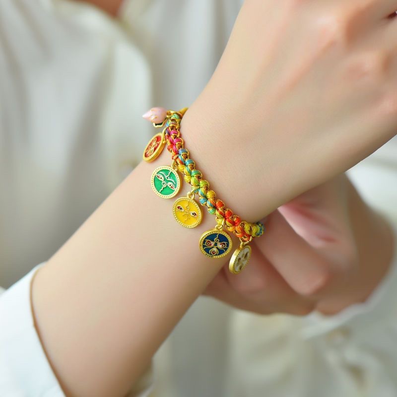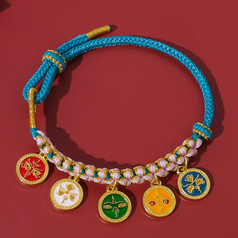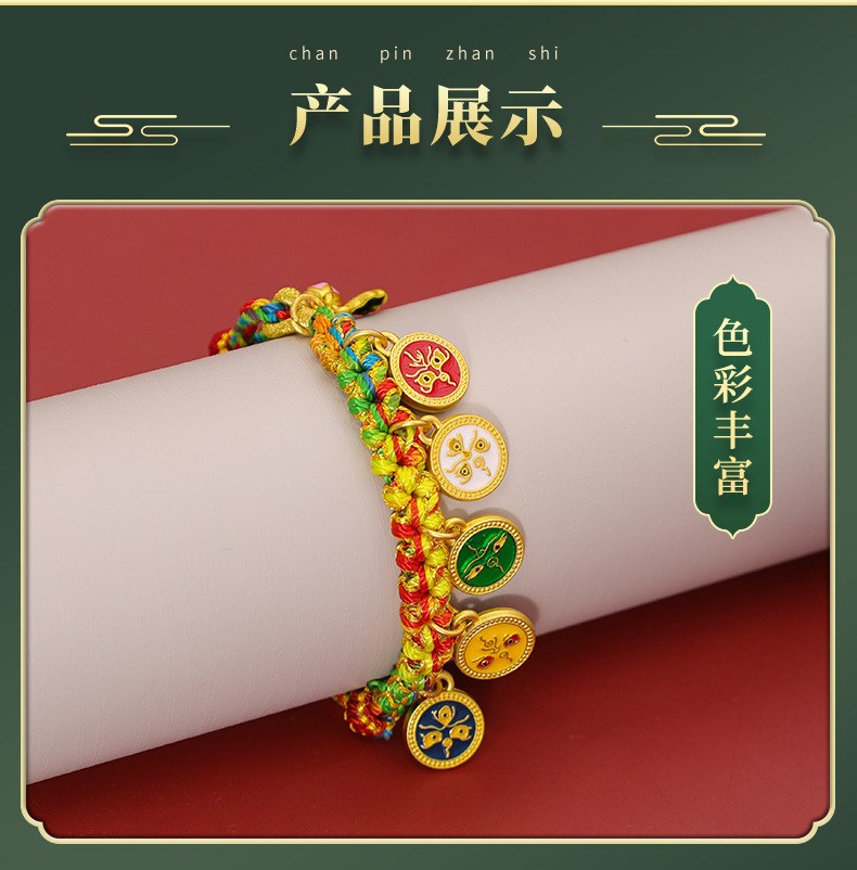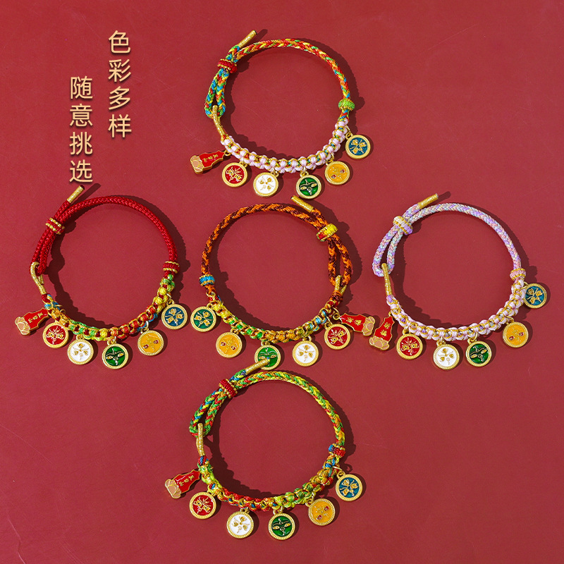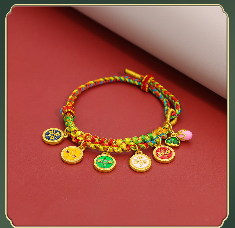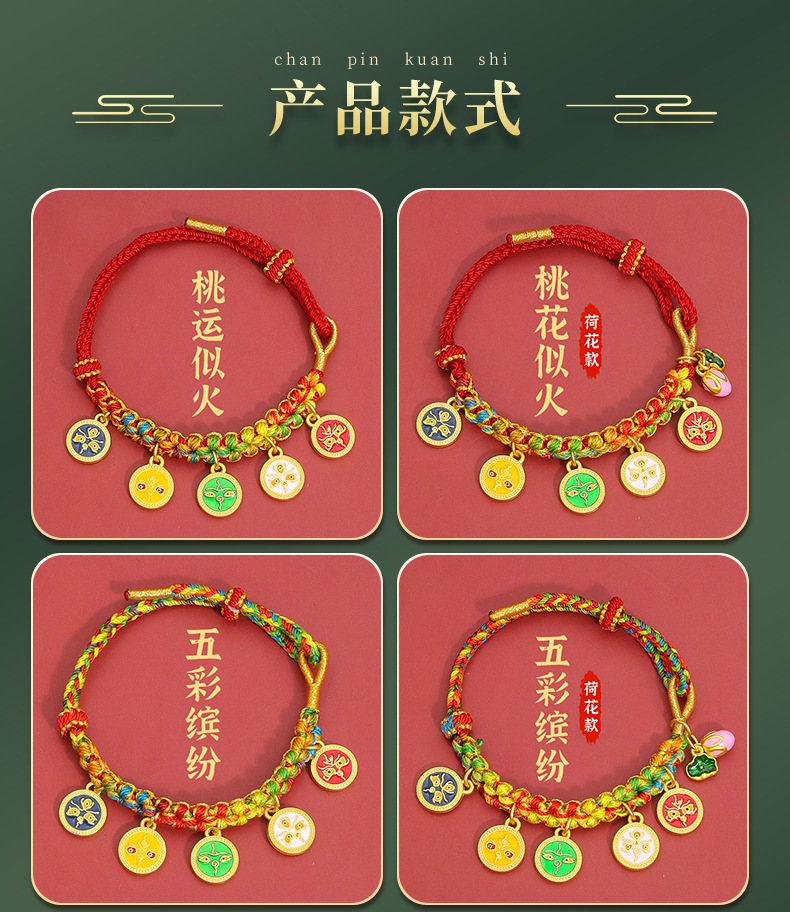 15-piece peach blossom knot bracelet, five gods of wealth style-colorful