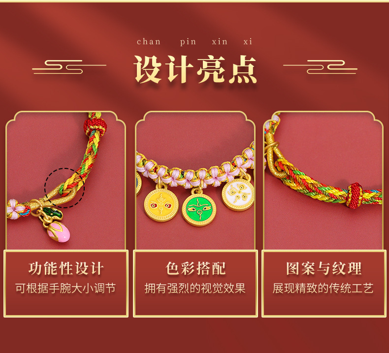 15-piece peach blossom knot bracelet, five gods of wealth style-everlasting fortune
