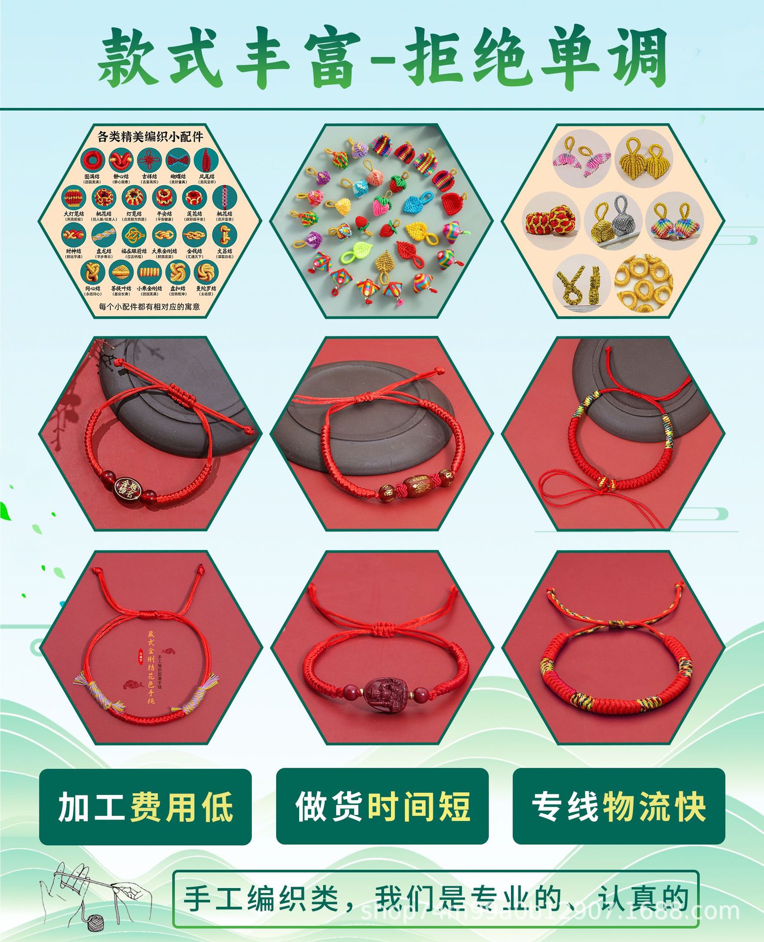 15-piece peach blossom knot bracelet plain rope-everlasting fortune