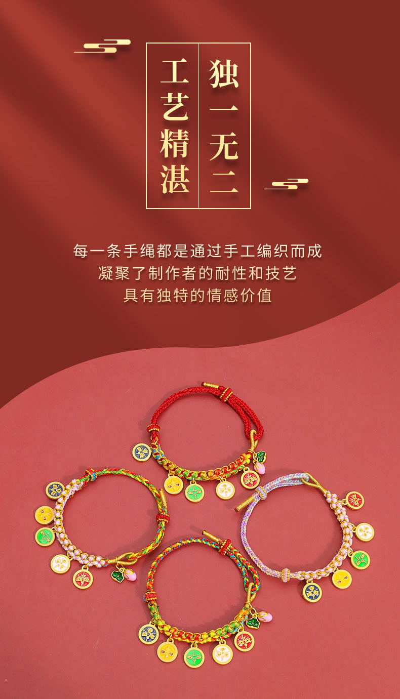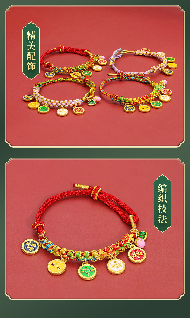 15-peach blossom knot bracelets, five-wealth-god style-bright red