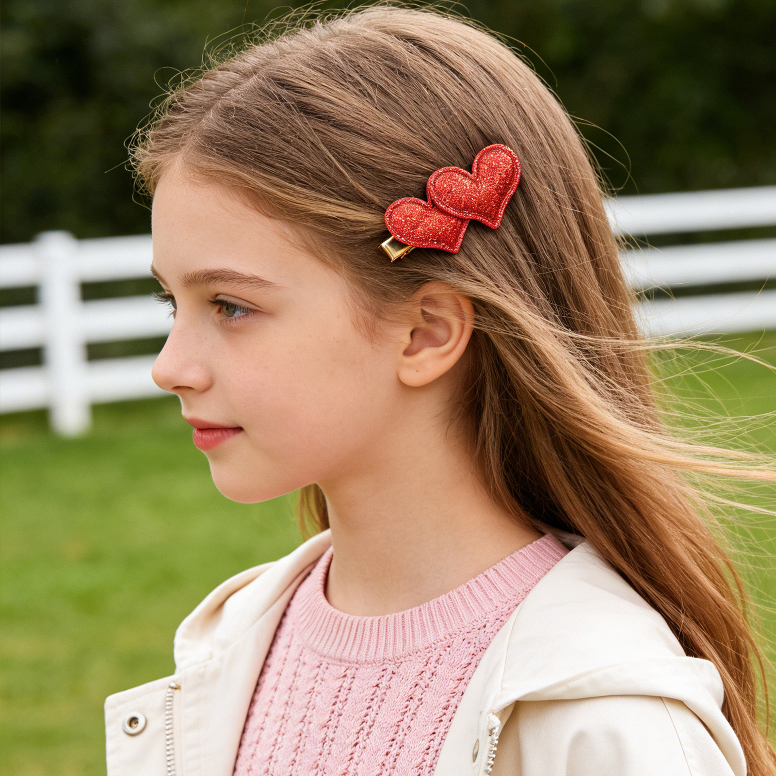 valentine's day sequined onion powder love heart-shaped hairpin