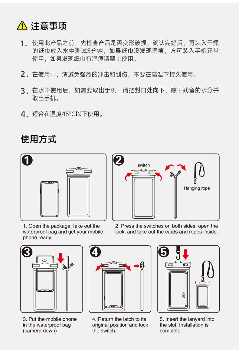 Waterproof phone bag, waterproof phone case, waterproof phone sleeve, airbag waterproof bag, waterproof bag for touch screen phones, and delivery waterproof bag