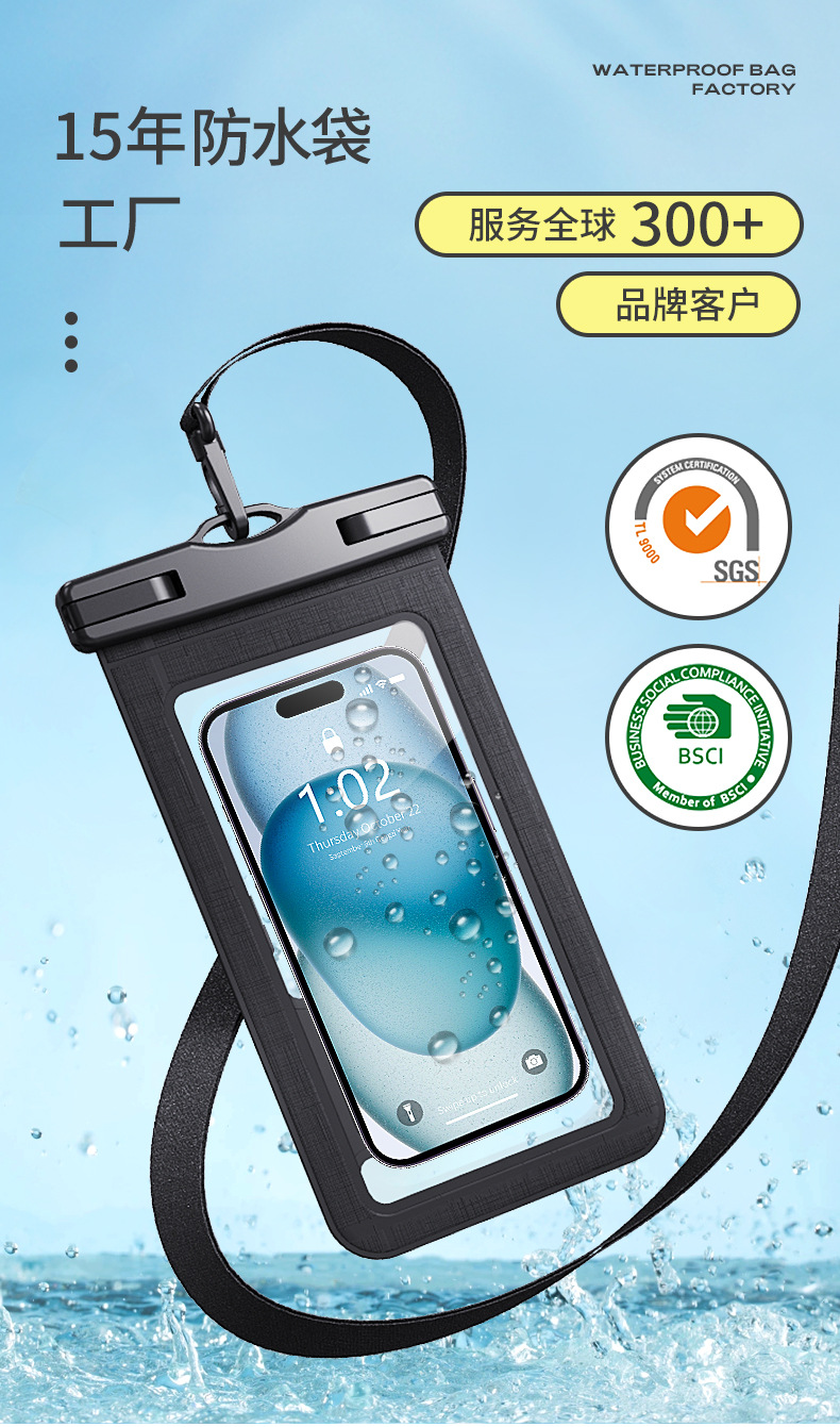 Waterproof phone bag with touch screen, waterproof phone bag, waterproof bag, waterproof phone case, waterproof bag, outdoor waterproof bag, high transparency waterproof phone bag with touch screen, swimming waterproof bag, water-spray festival waterproof bag, waterproof phone shell, outdoor waterproof bag, 8-level waterproof phone bag, PVC waterproof bag, phone waterproof bag, TPU waterproof bag.