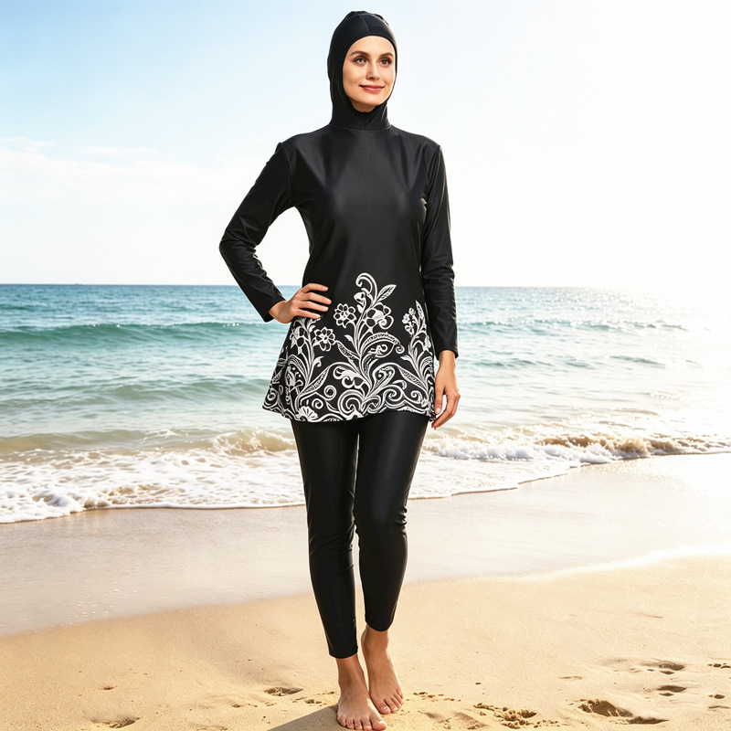 Long-sleeved, long pants, sunscreen, hooded swimsuit