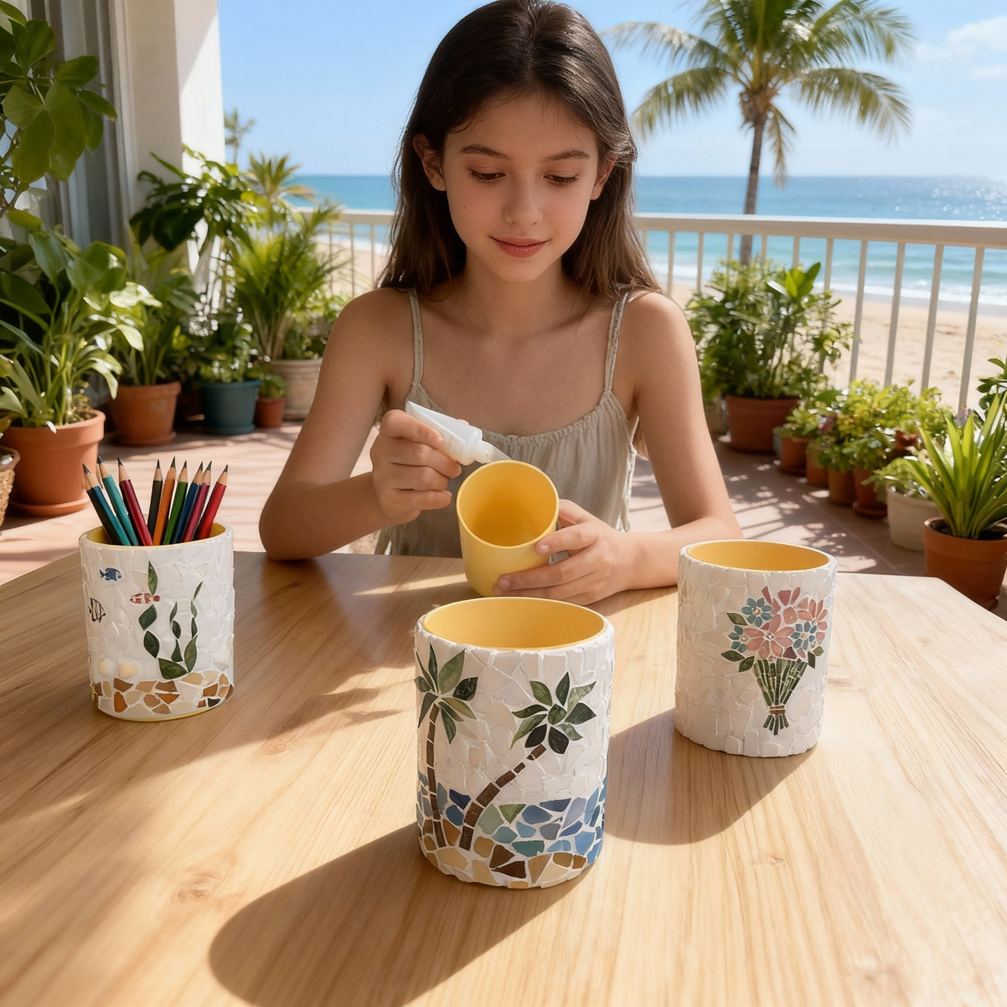 yellow round plastic pen holder