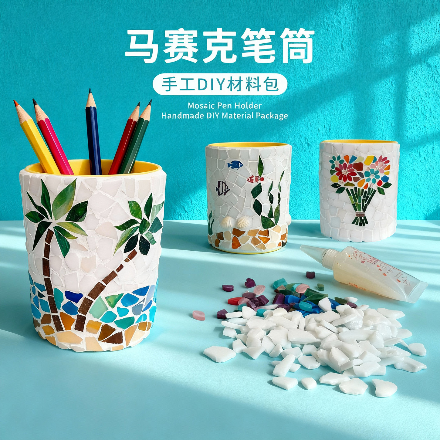 lake blue square plastic pen holder