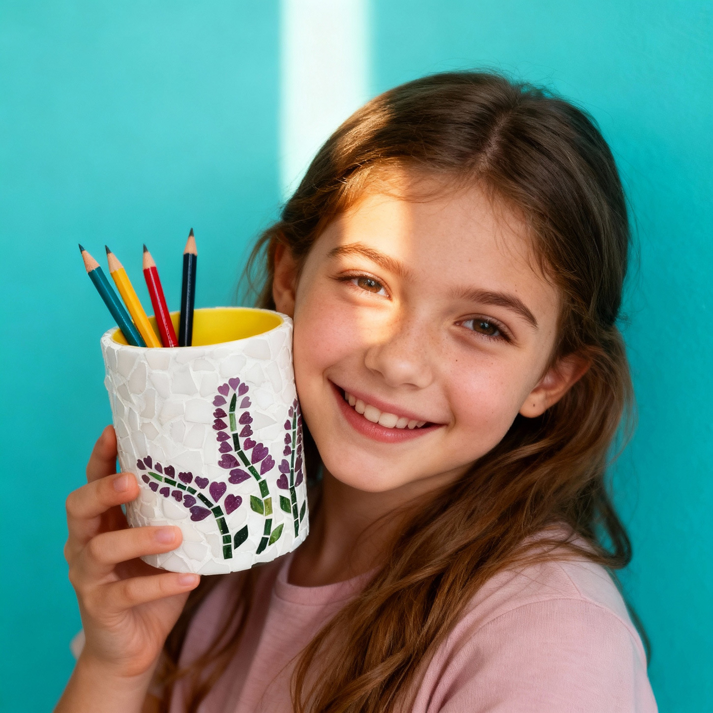 pink six-side plastic pen holder