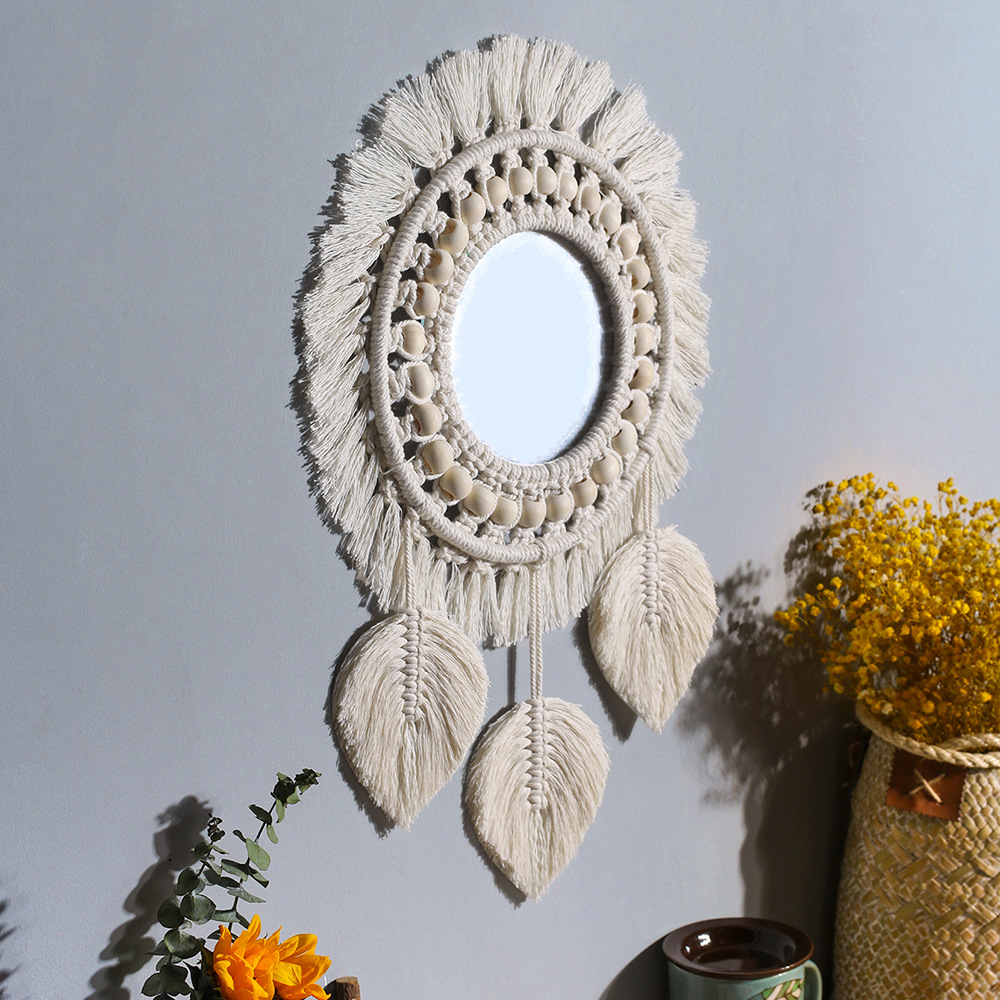 nordic-style woven tapestry mirror, leaf decorative mirror, hallway mirror, creative makeup mirror, wall decorations, personalized b&b soft furnishings