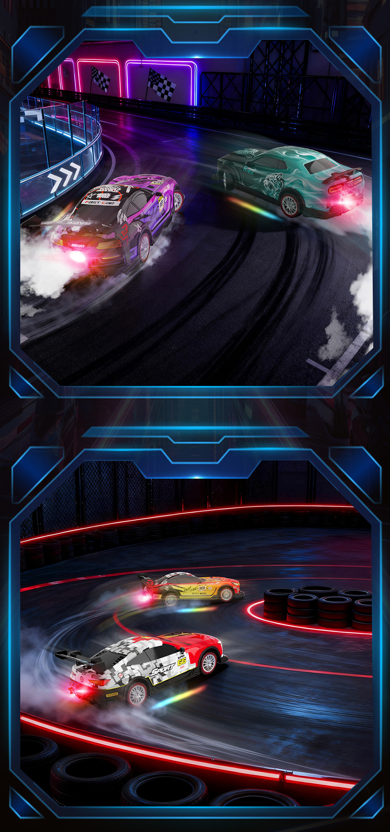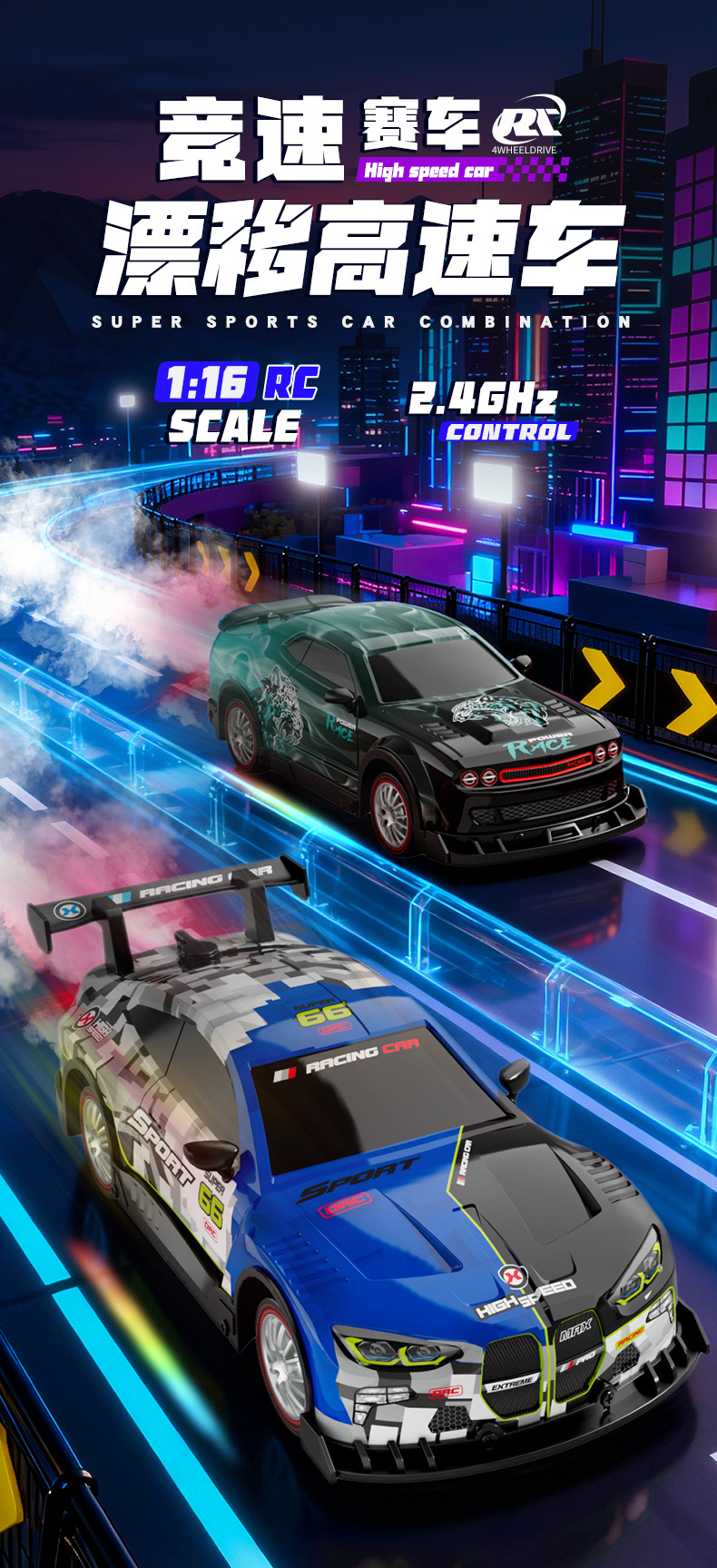 [two-mode control]-blue-spray-effect remote-controlled drift car-[2 lithium battery packs]