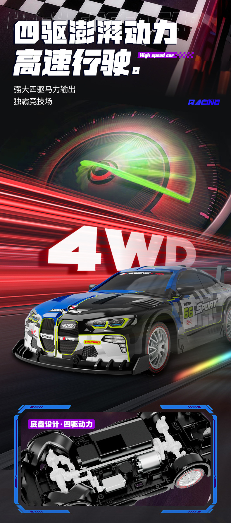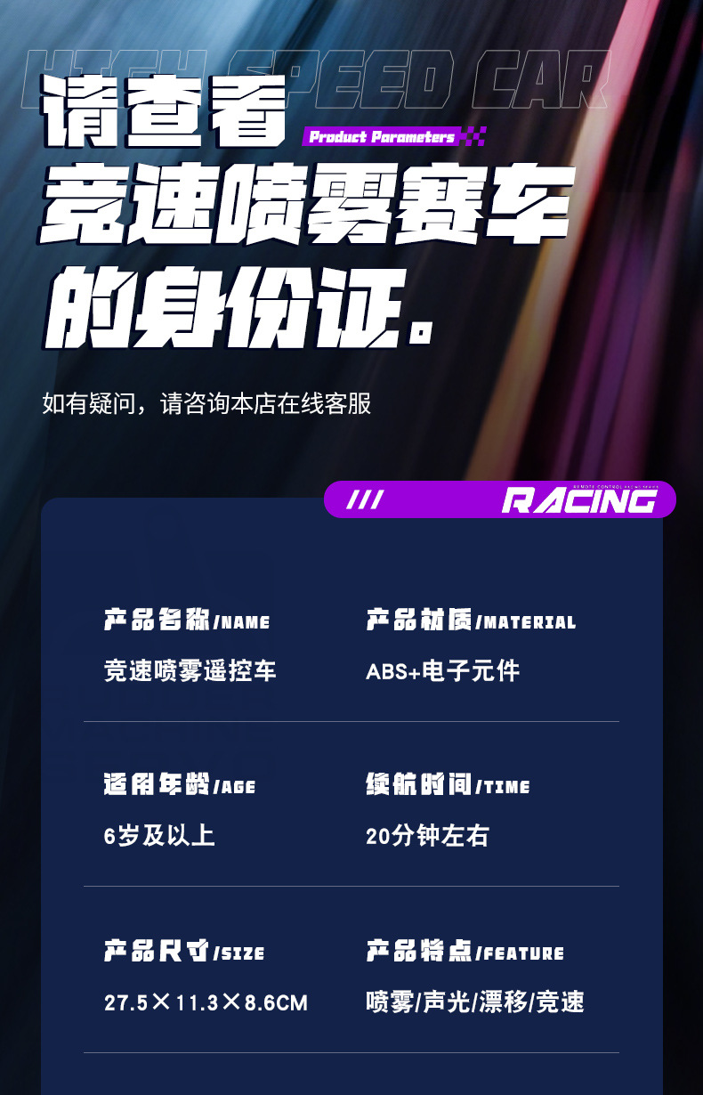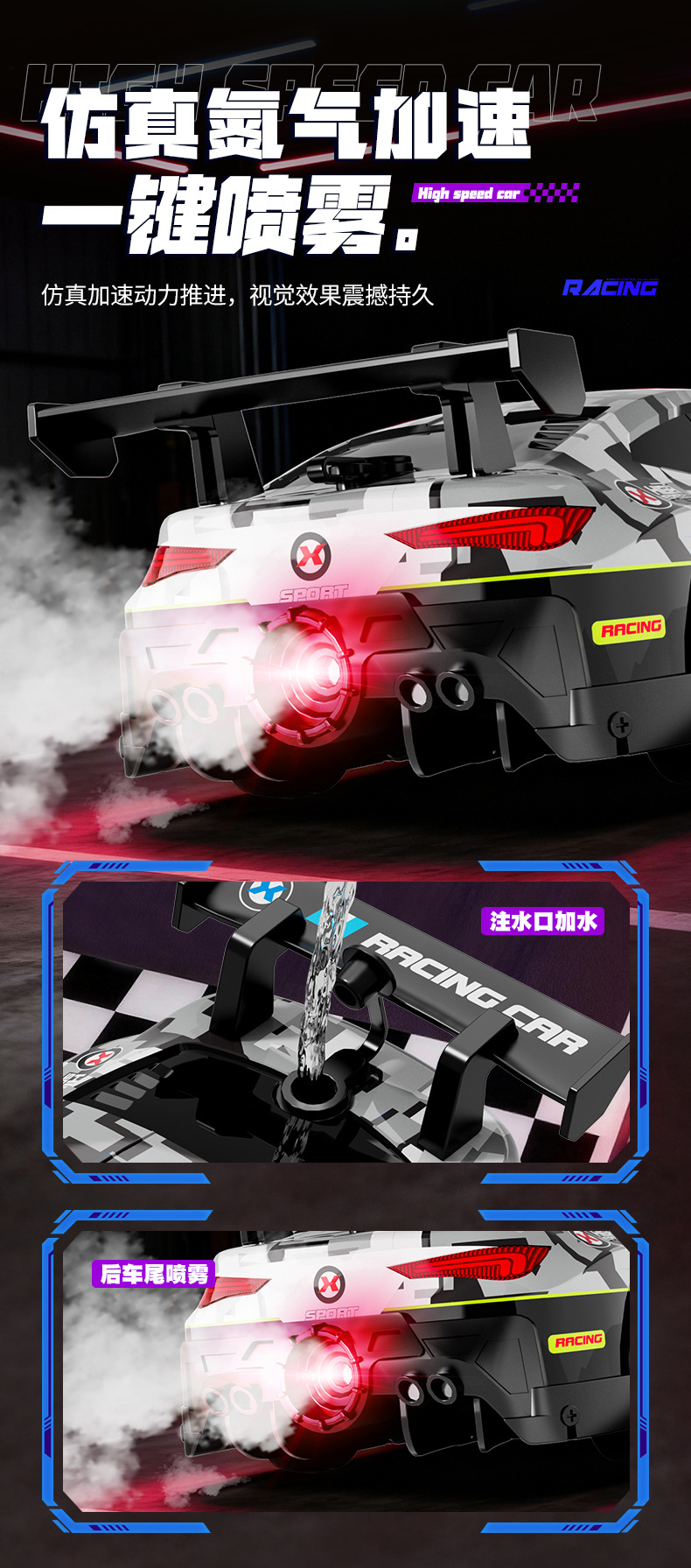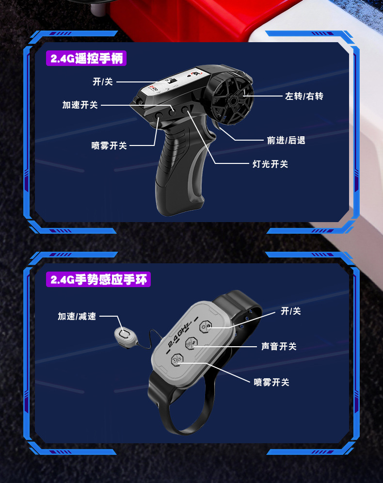 四驱灯光喷雾遥控车