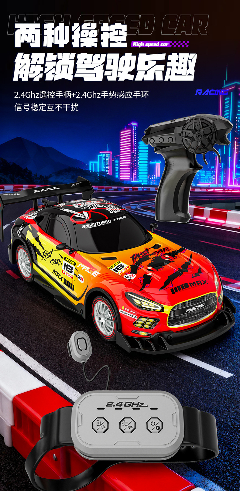 [two-mode control]-green-spray-drift remote-control car-[2 lithium batteries]
