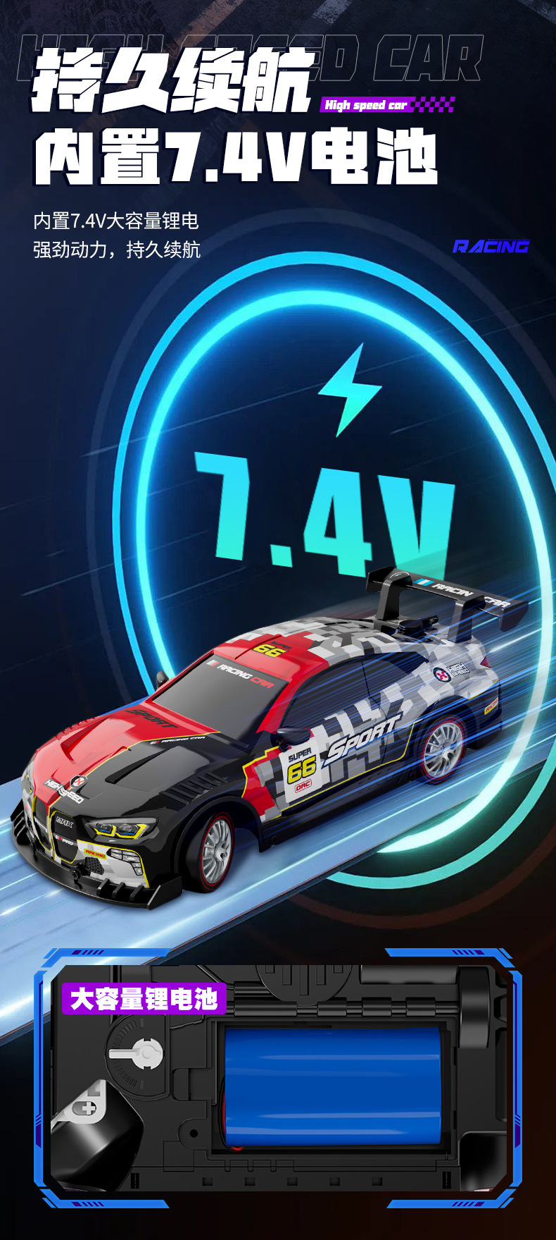 [single control]-blue-spray-effect drift rc car-[1 set of lithium batteries]